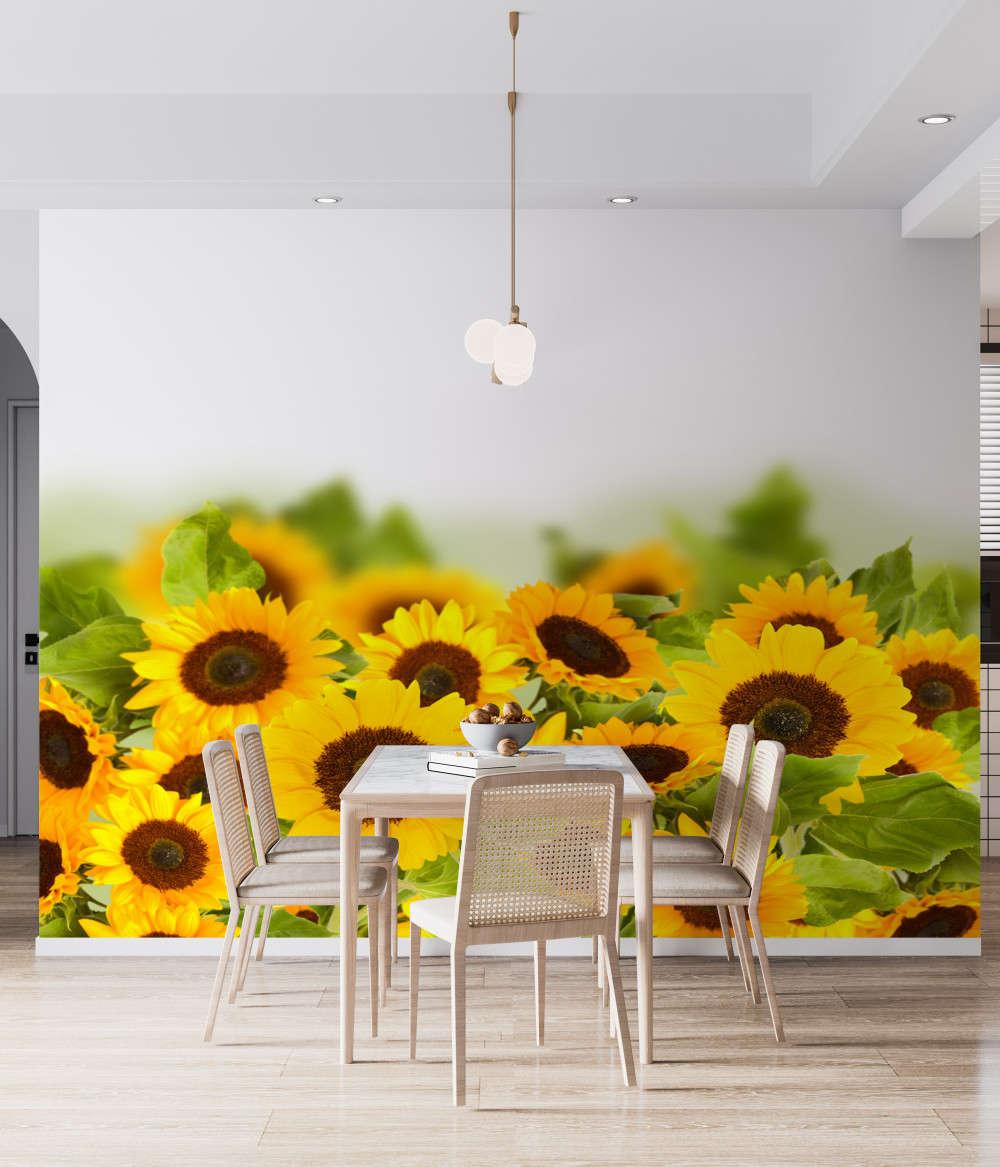 Tapeta Fototapeta pole młodych słoneczników (artykuł a91039 ) z kategorii Fototapety 3D