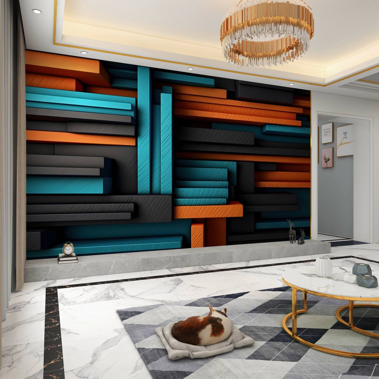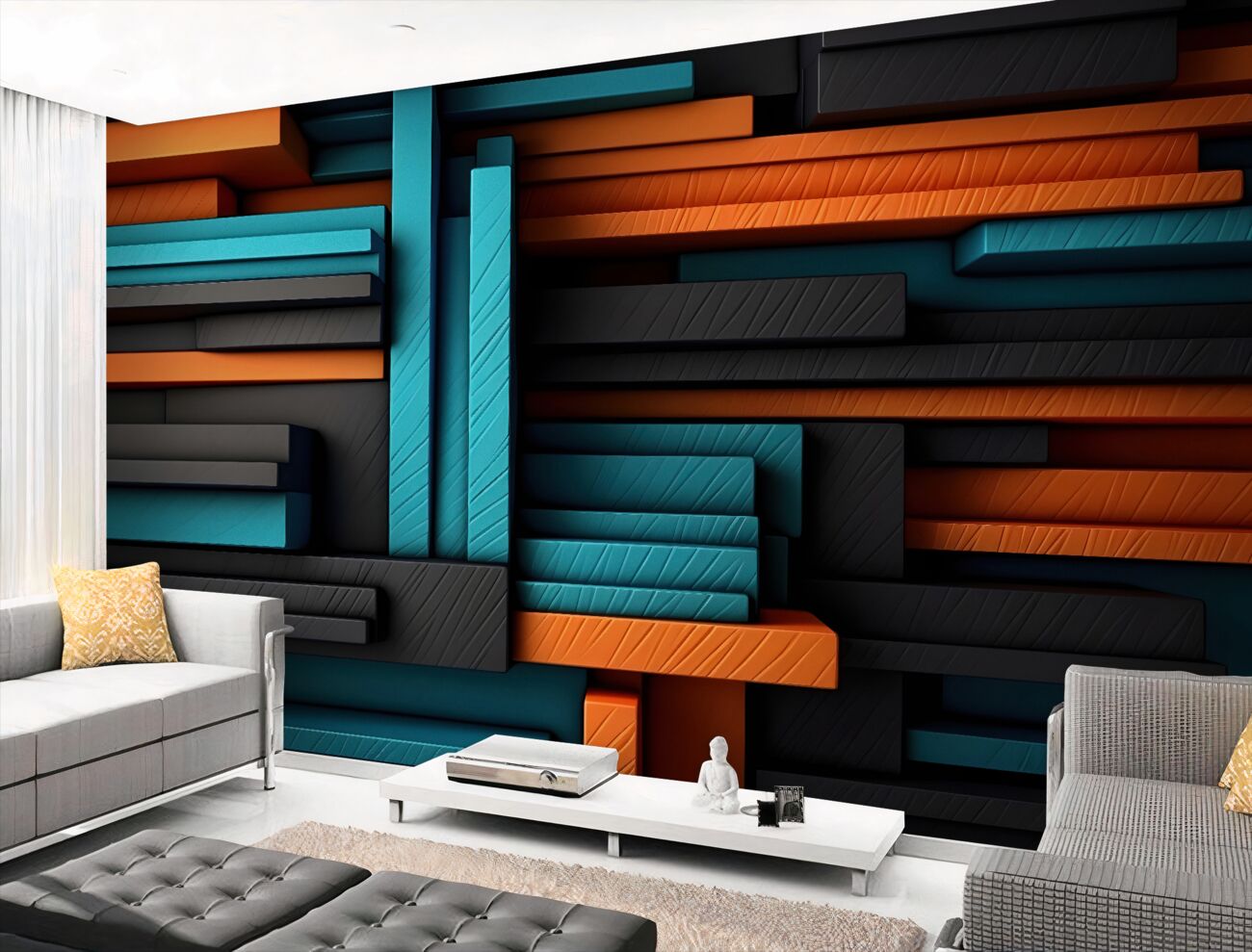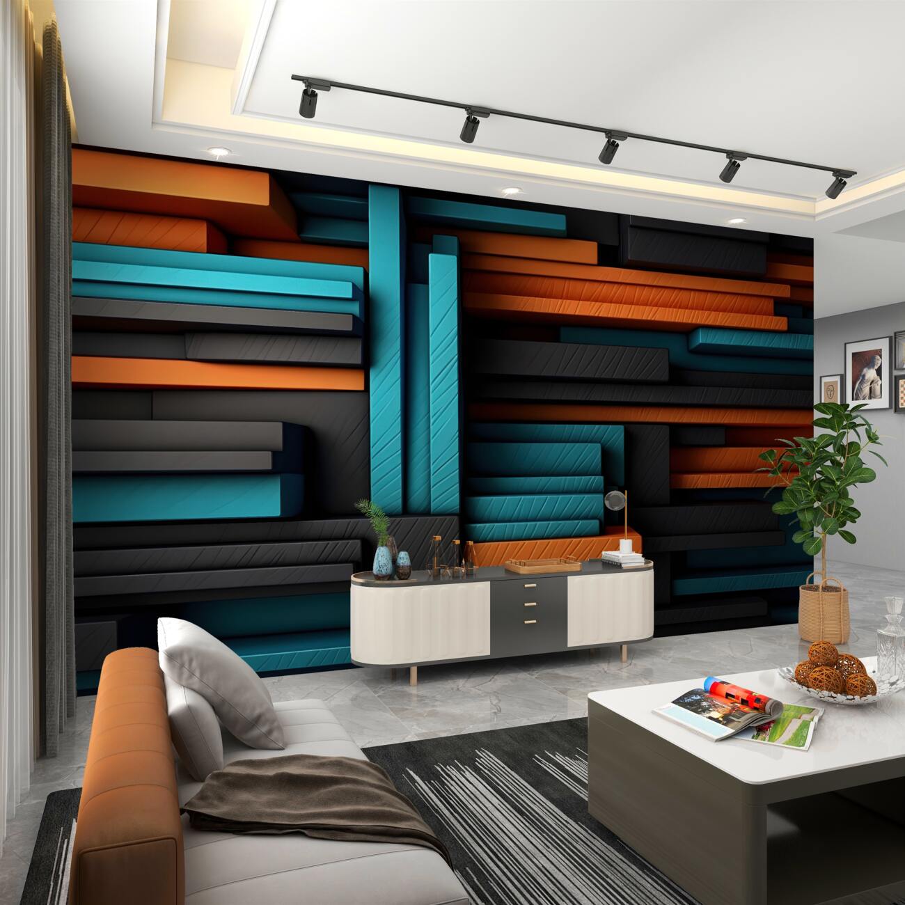 Tapeta Fototapeta Półki wykonane z drewna o różnych kolorach i formatach (artykuł u10391 ) z kategorii Fototapety 3D