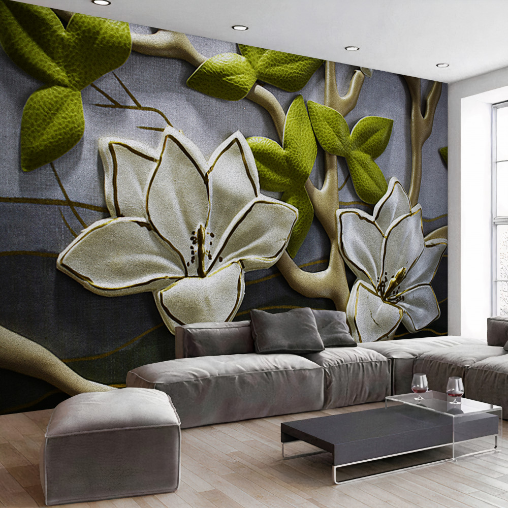 Tapeta Fototapeta porcelanowe kwiaty magnolii na zielonych gałęziach (artykuł pb6697 ) z kategorii Fototapety 3D