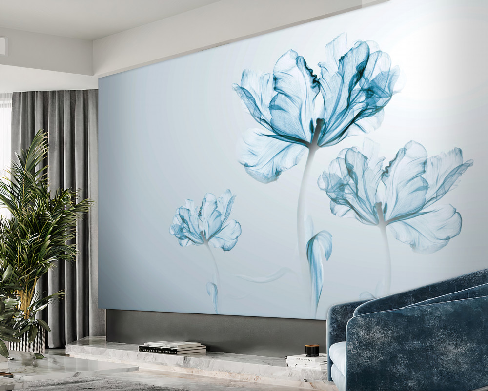 Tapeta Fototapeta przezroczyste, niebieskie kwiaty (artykuł a91863 ) z kategorii Fototapety 3D
