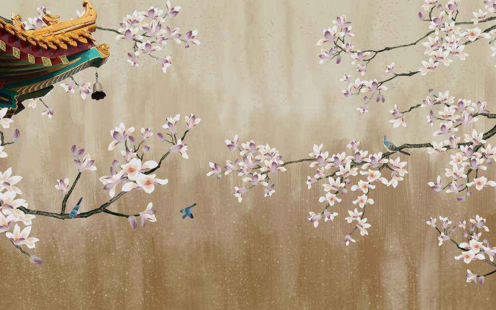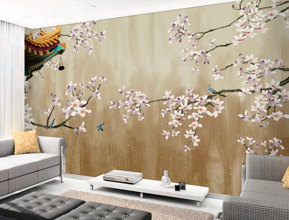 Tapeta Fototapeta ptaki cieszą się kwitnącymi kwiatami (artykuł a91601 ) z kategorii Fototapety 3D