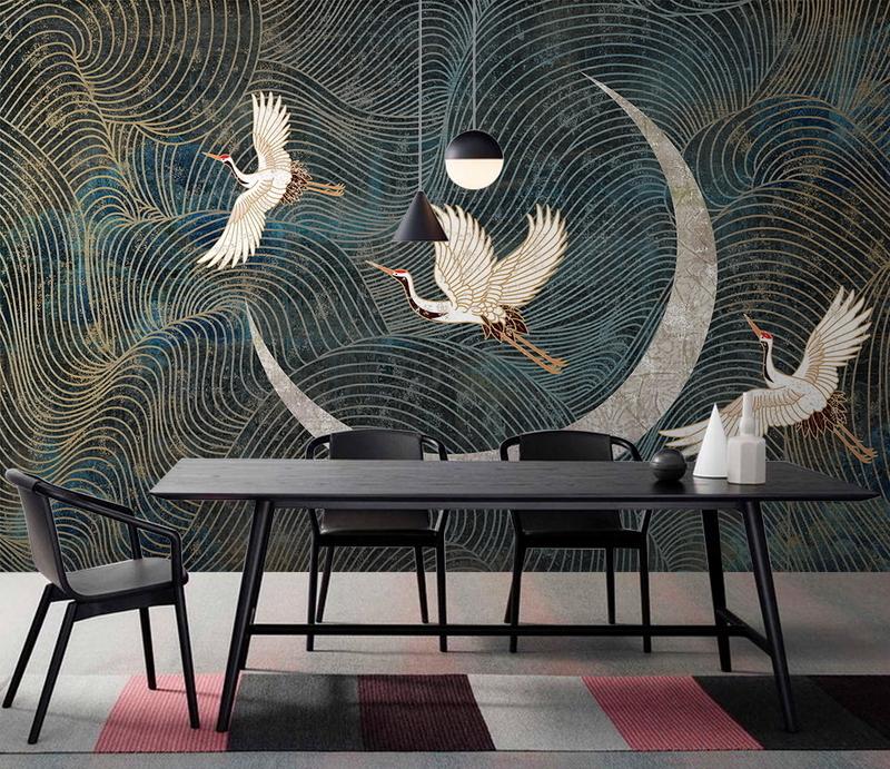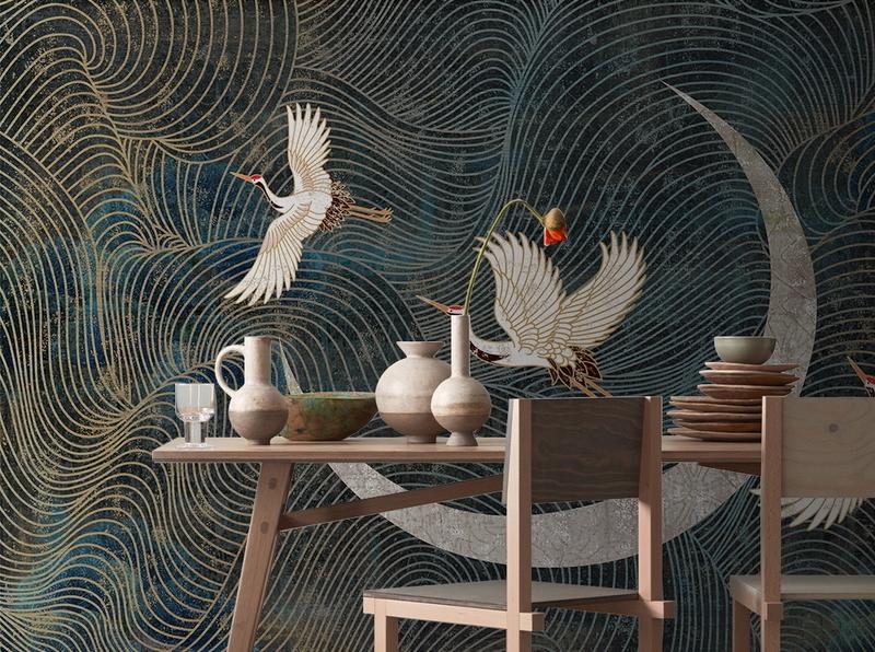 Tapeta Fototapeta ptaki księżyc fale (artykuł a151 ) z kategorii Fototapety 3D