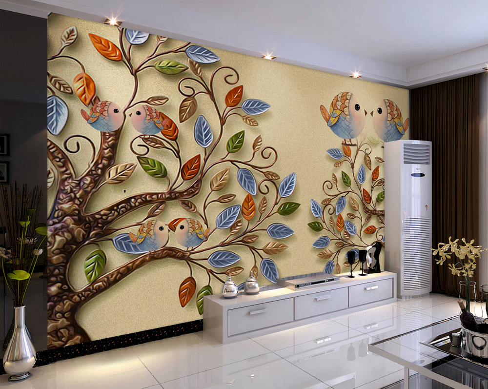 Tapeta Fototapeta ptaki na jesiennych drzewach (artykuł pb6707 ) z kategorii Fototapety 3D