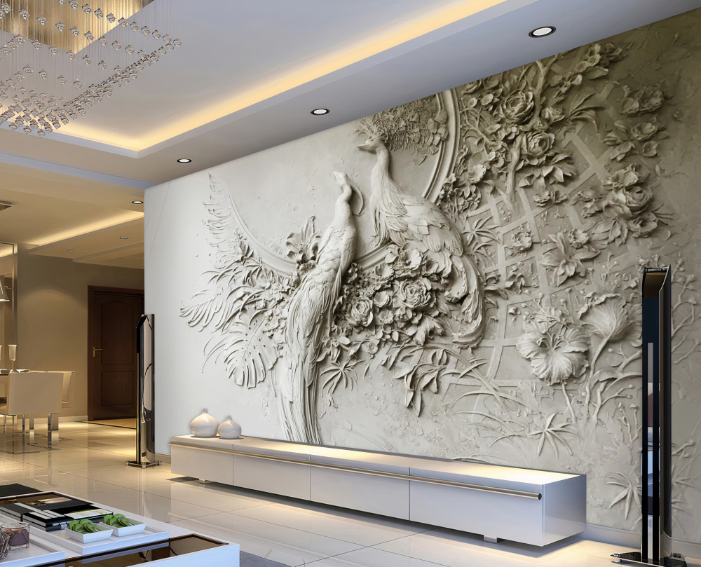 Tapeta Fototapeta rodzina pawi na kwitnącym drzewie (artykuł a91342 ) z kategorii Fototapety 3D