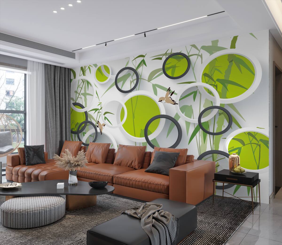 Tapeta Fototapeta Rośliny i ptaki z okręgami (artykuł a98324 ) z kategorii Fototapety 3D