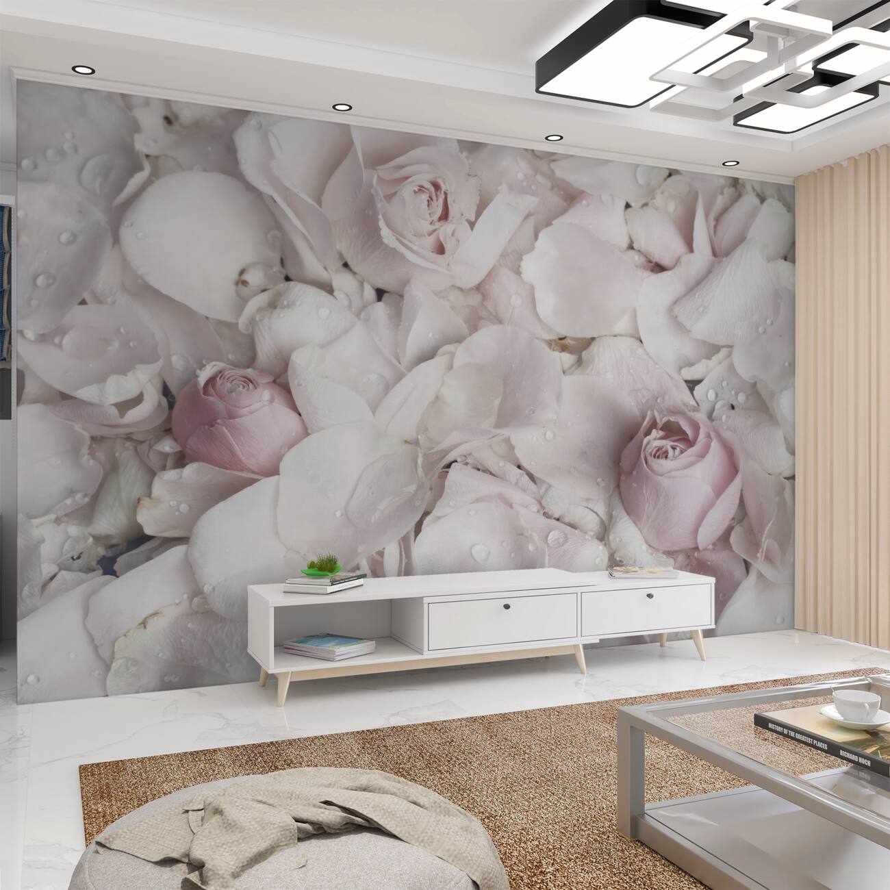 Tapeta Fototapeta Róża i płatki pod rosą (artykuł u11254 ) z kategorii Fototapety 3D
