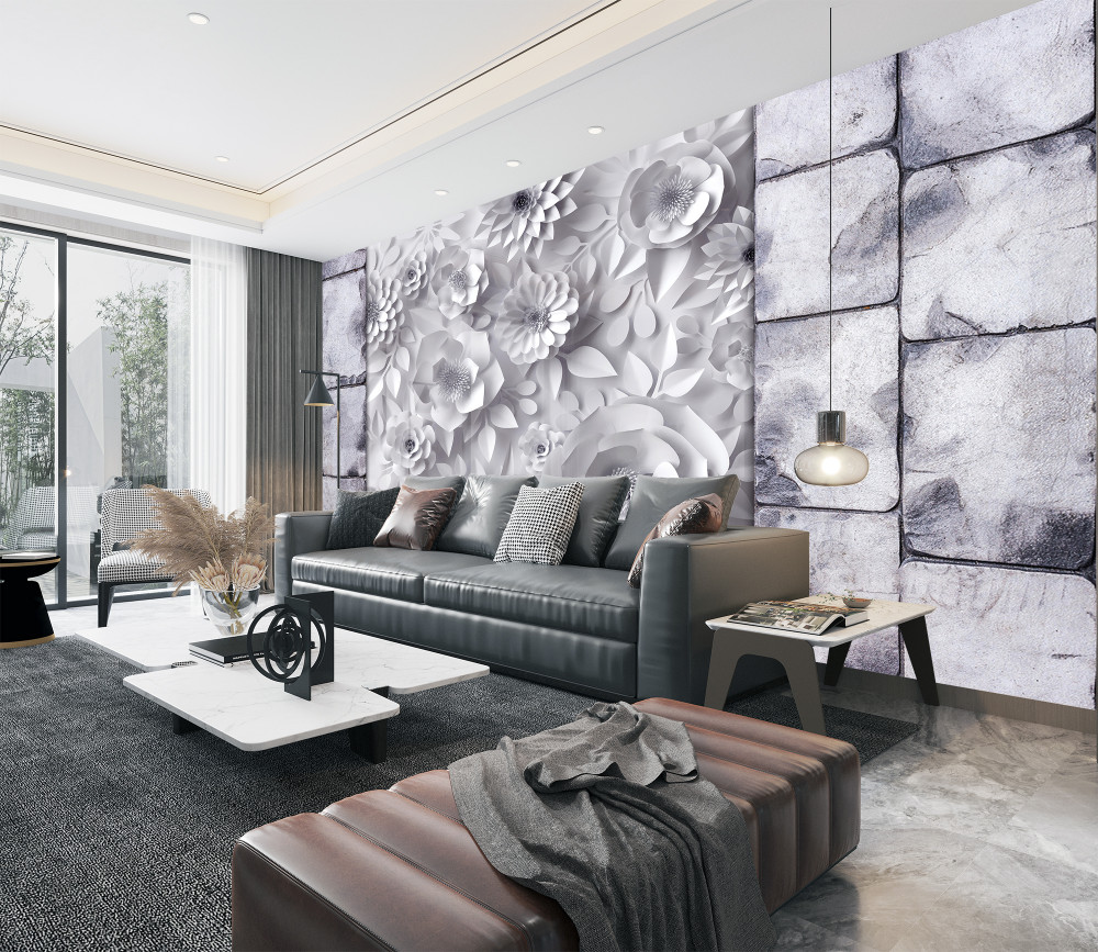 Tapeta Fototapeta różne obszerne kwiaty na ceglanym tle (artykuł a94159 ) z kategorii Fototapety 3D
