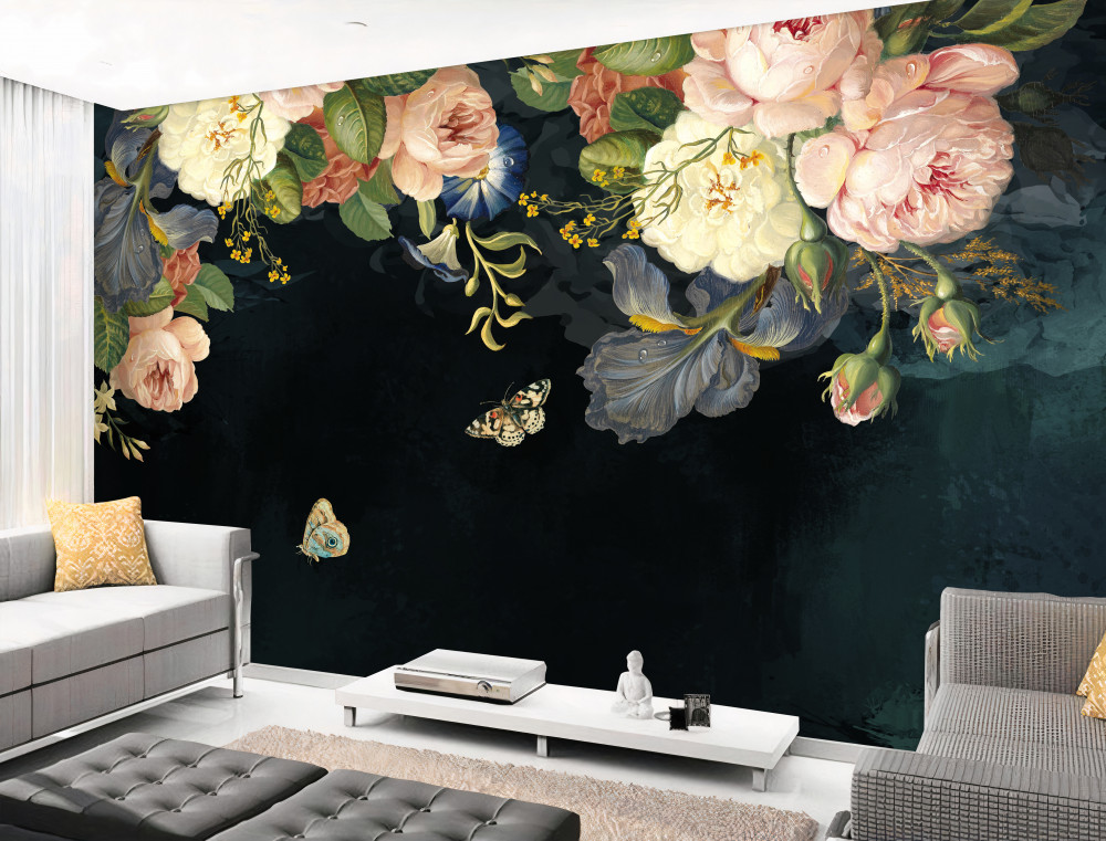 Tapeta Fototapeta różnorodność kwiatów na ciemnym tle (artykuł a89932 ) z kategorii Fototapety 3D
