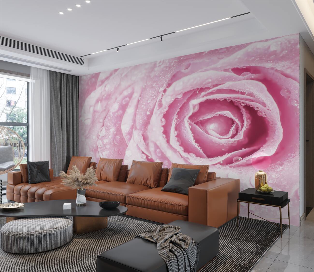 Tapeta Fototapeta Różowa róża pod deszczowym makro (artykuł u11321 ) z kategorii Fototapety 3D