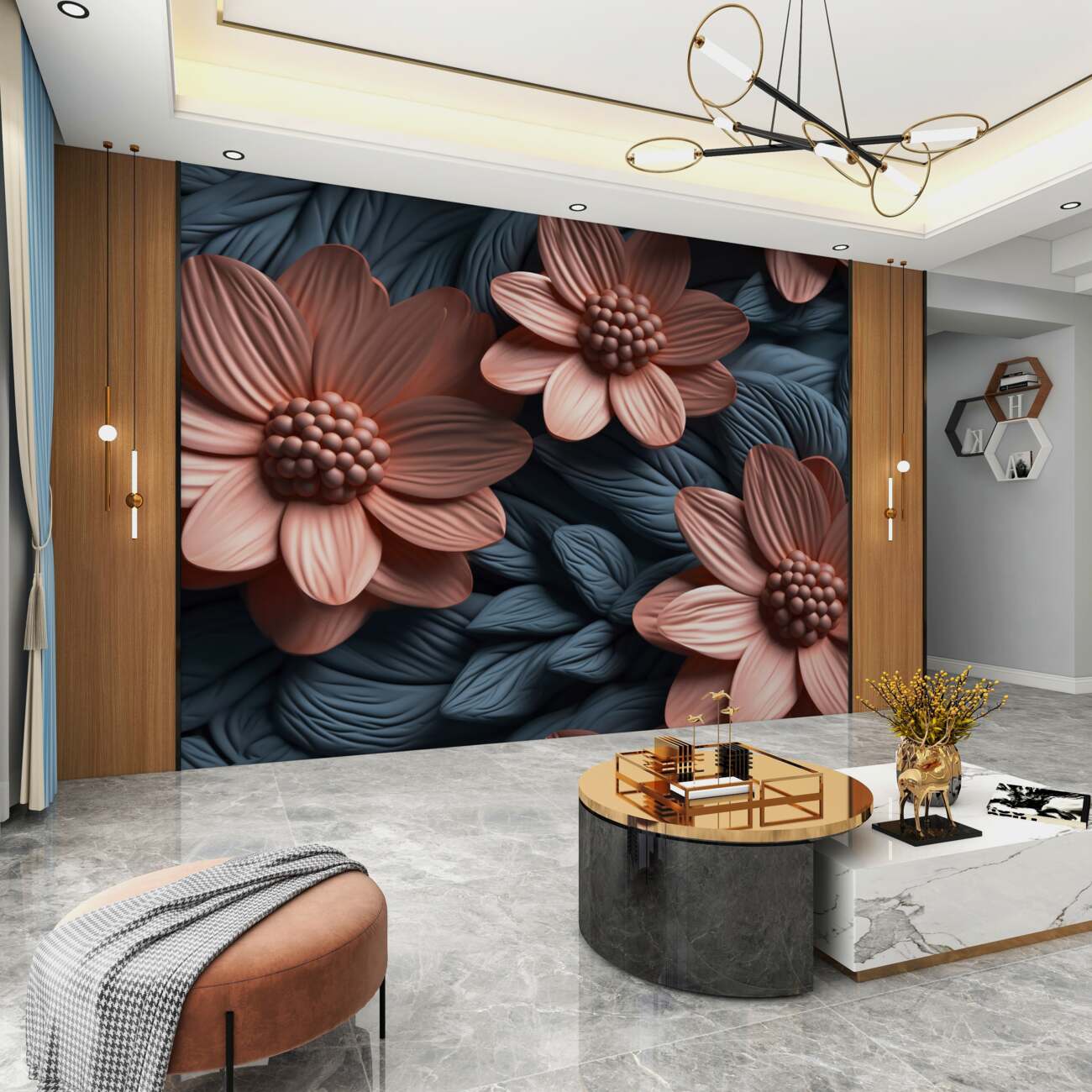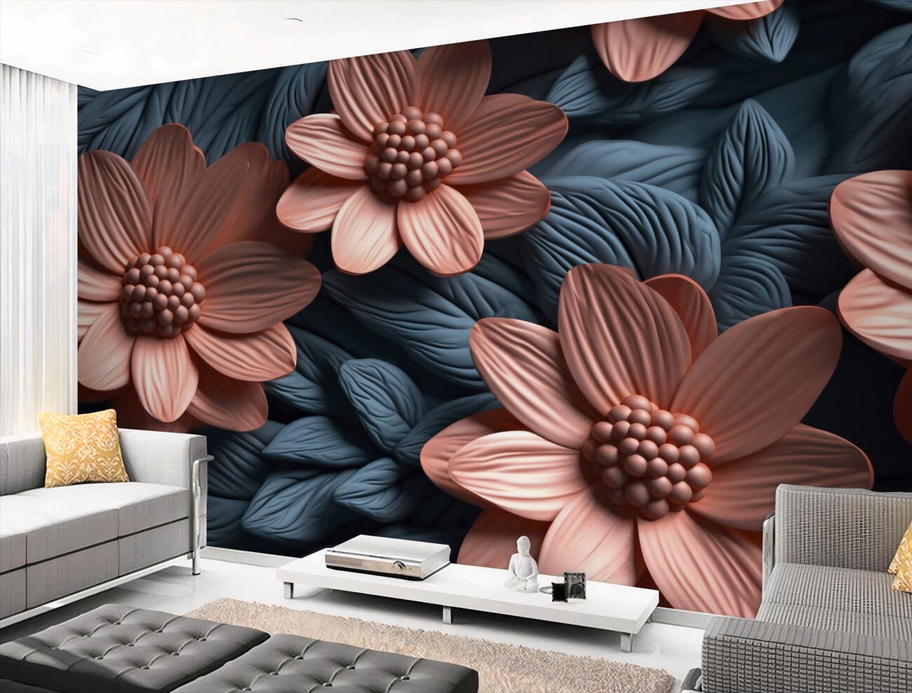 Tapeta Fototapeta Różowe gips duże kwiaty (artykuł u10326 ) z kategorii Fototapety 3D