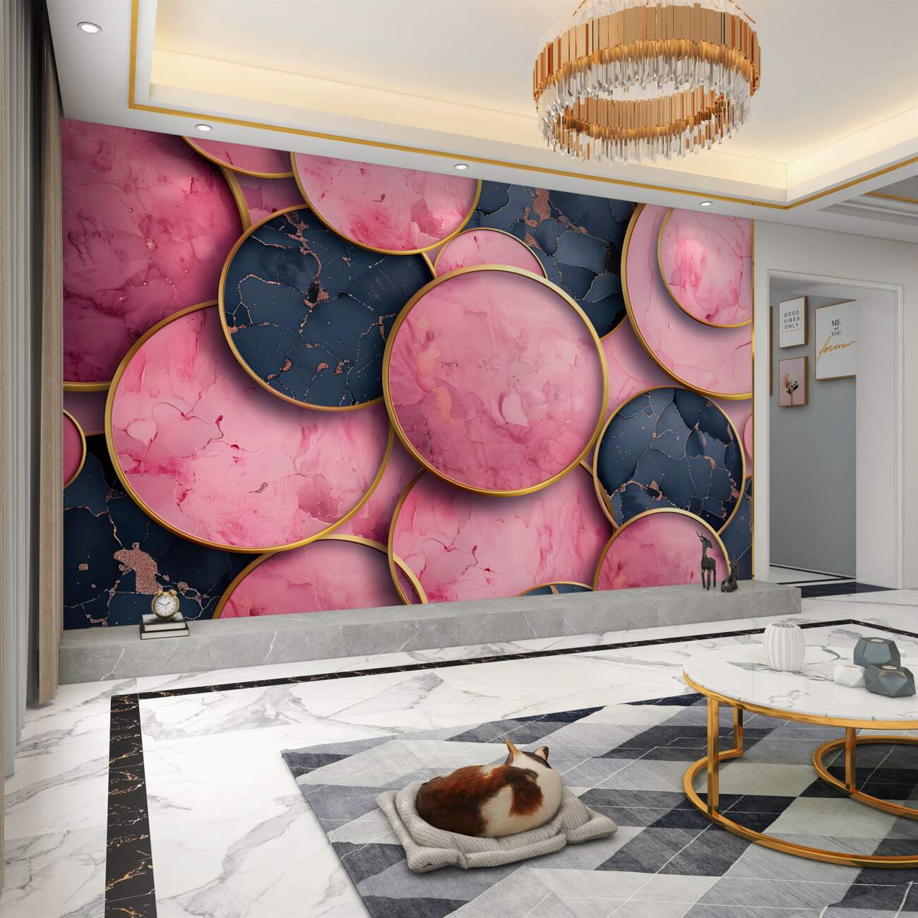 Fototapeta Różowe i ciemne marmurowe kręgi