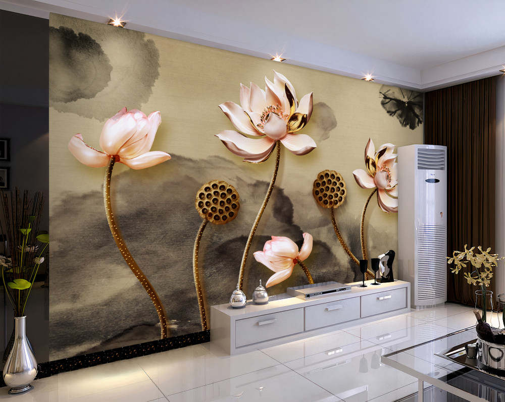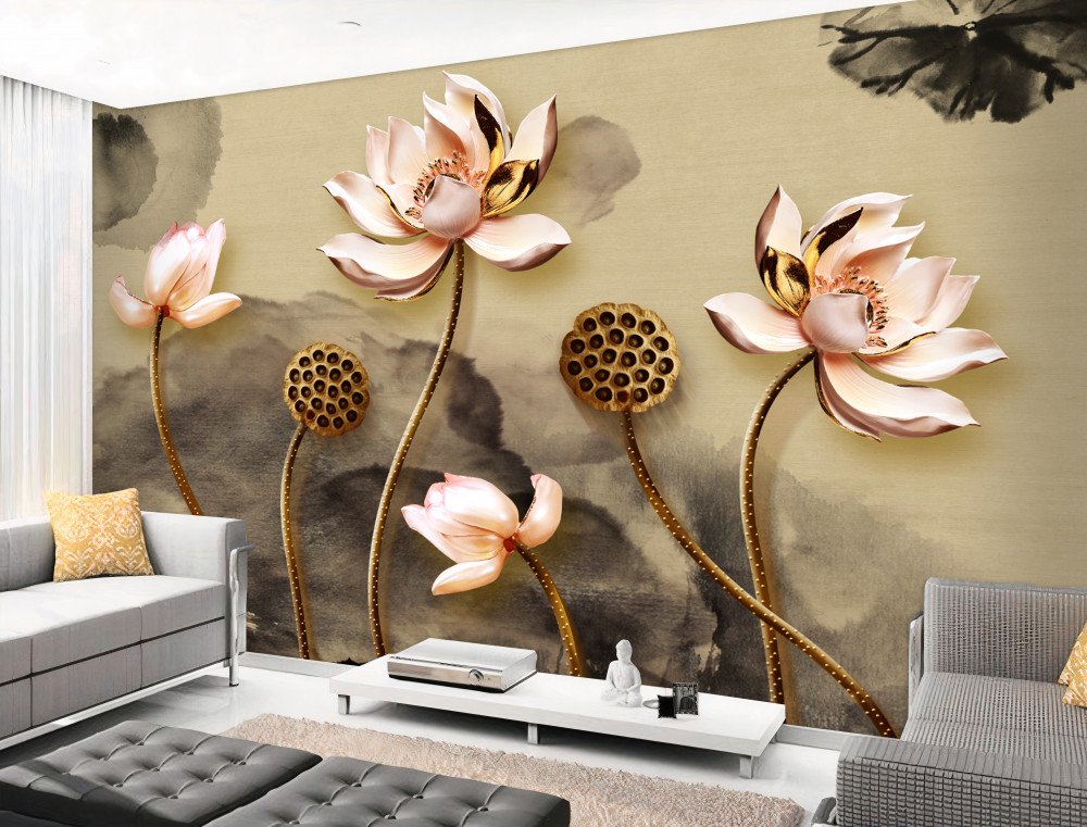 Tapeta Fototapeta różowe pąki kwiatowe na wietrze (artykuł pb3341 ) z kategorii Fototapety 3D