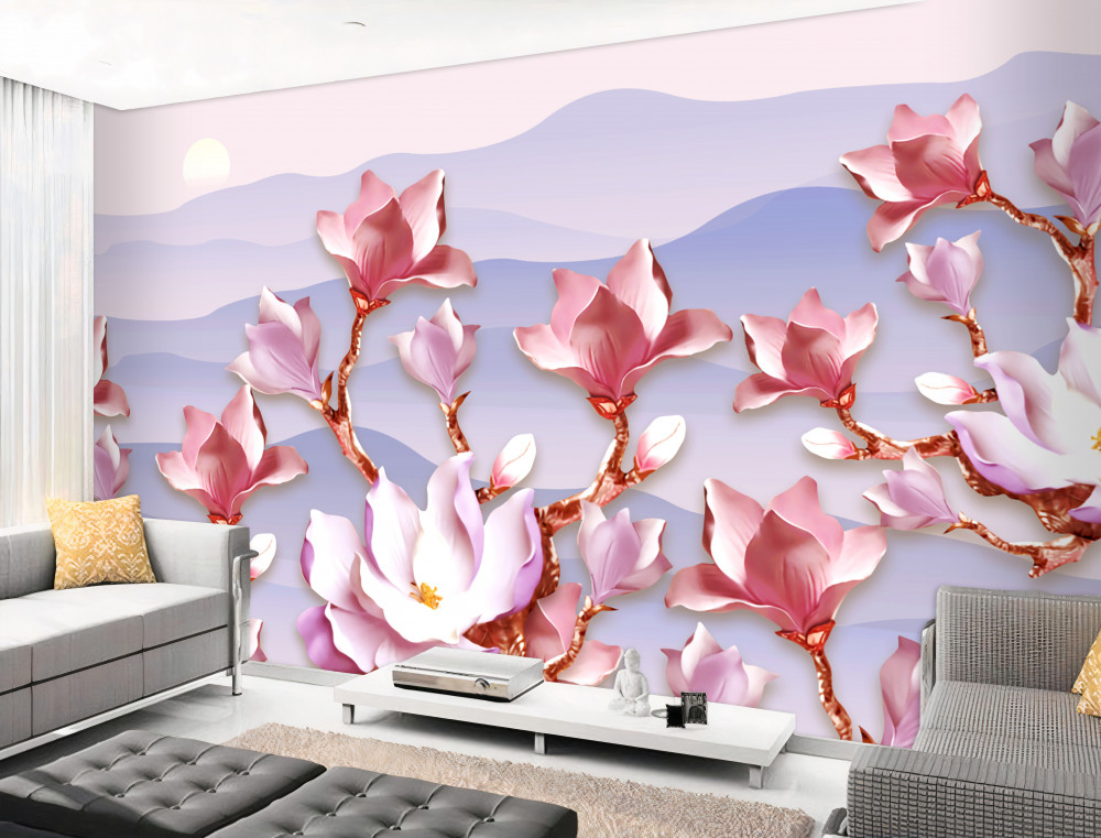 Tapeta Fototapeta różowe pąki magnolii na tle zachodu słońca (artykuł pb2222 ) z kategorii Fototapety 3D