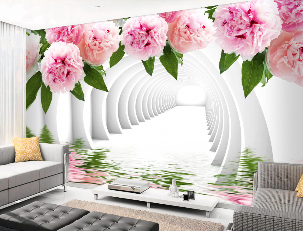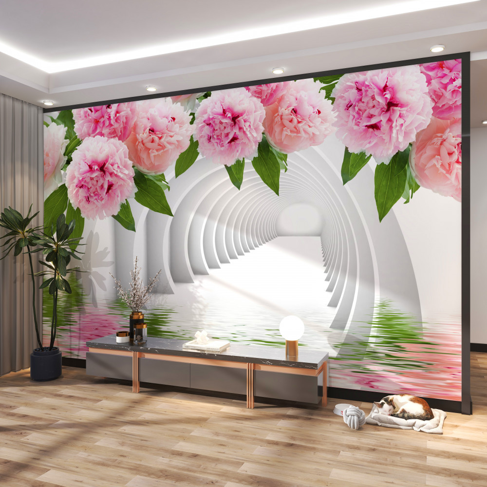 Tapeta Fototapeta różowe piwonie nad wodą (artykuł a89978 ) z kategorii Fototapety 3D