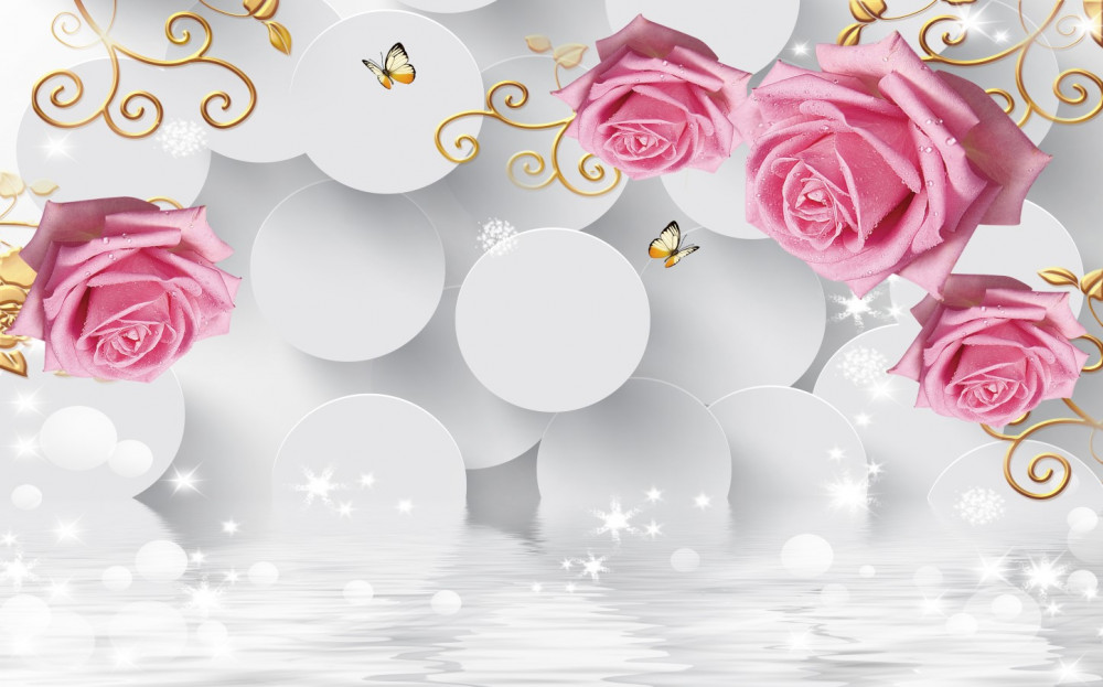 Tapeta Fototapeta różowe róże na tle białych kółek (artykuł a90391 ) z kategorii Fototapety 3D
