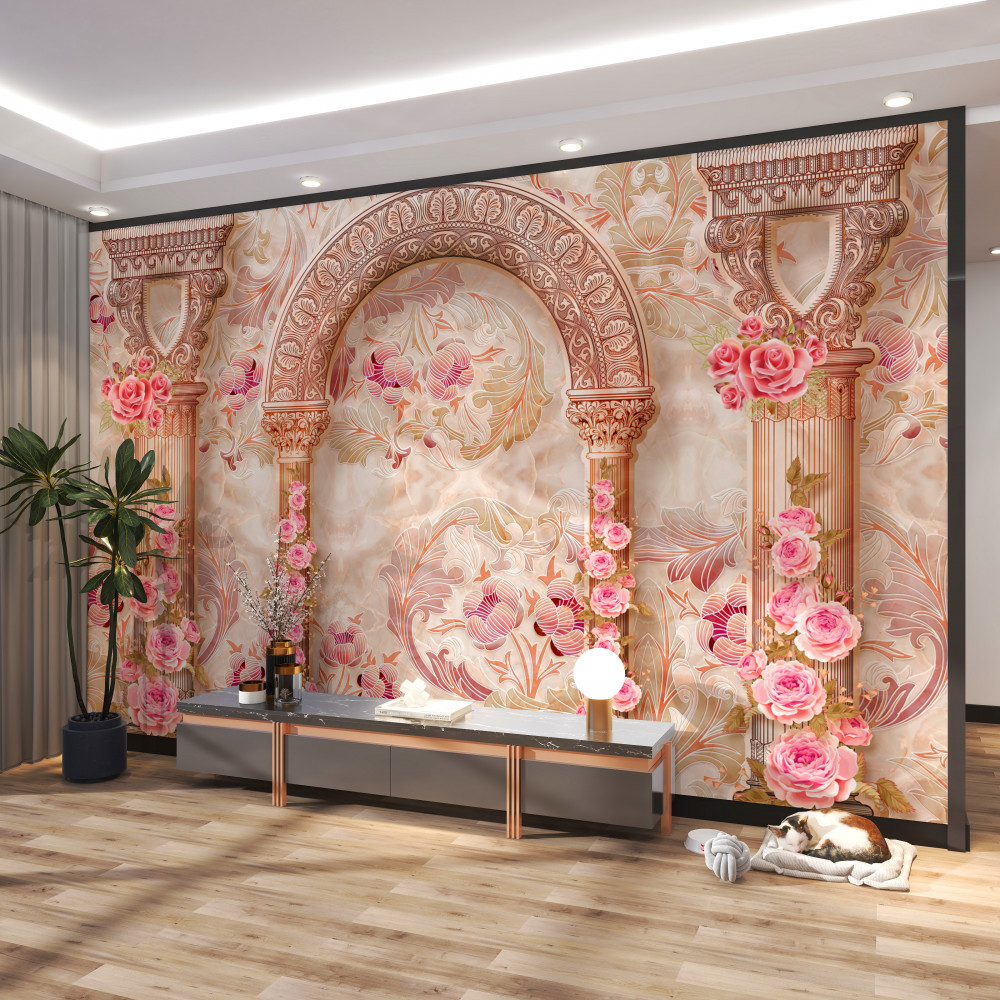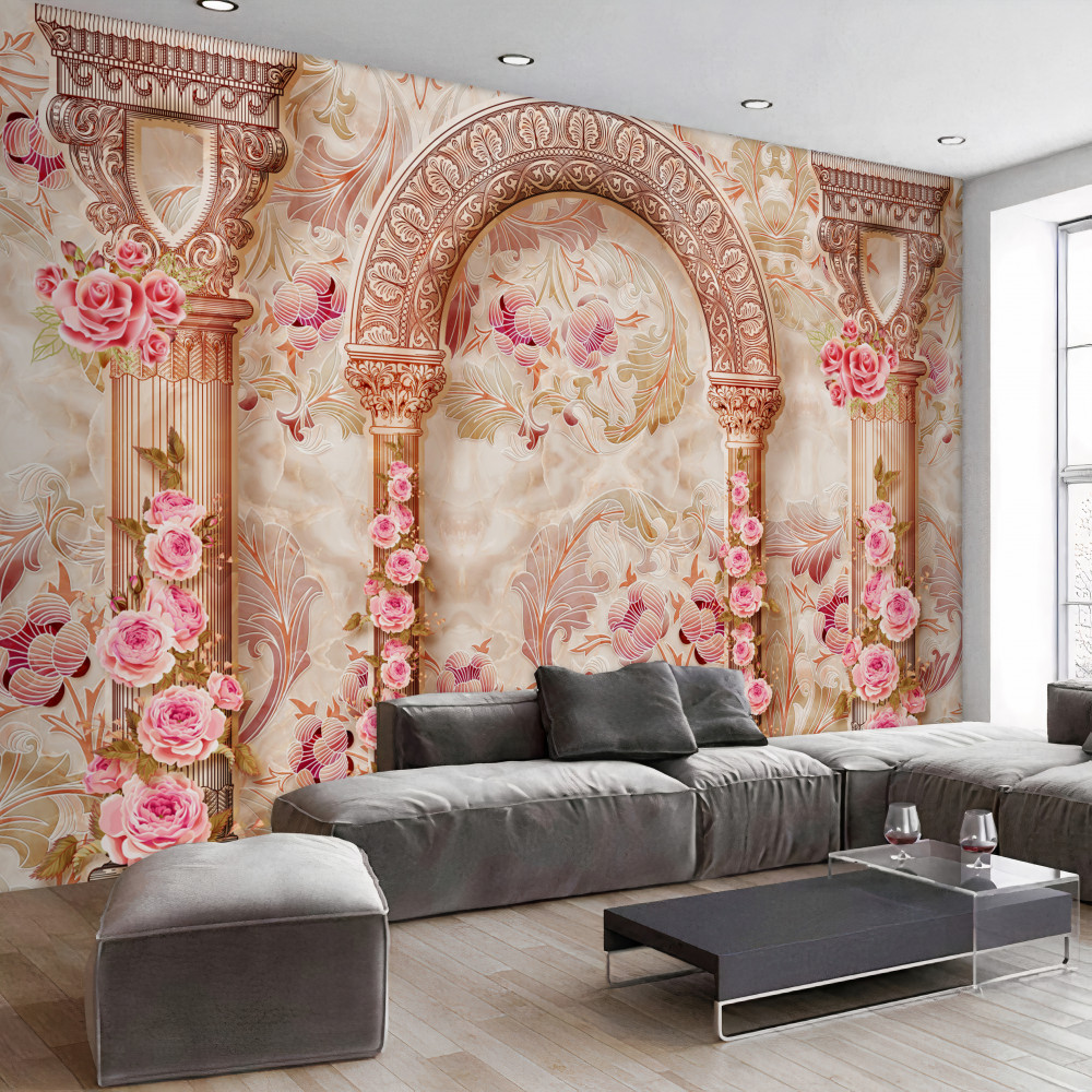 Tapeta Fototapeta różowy łuk kwiatowy (artykuł a90937 ) z kategorii Fototapety 3D