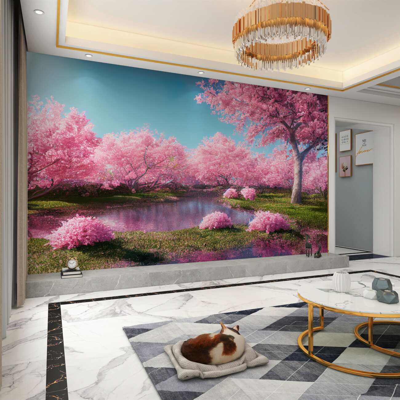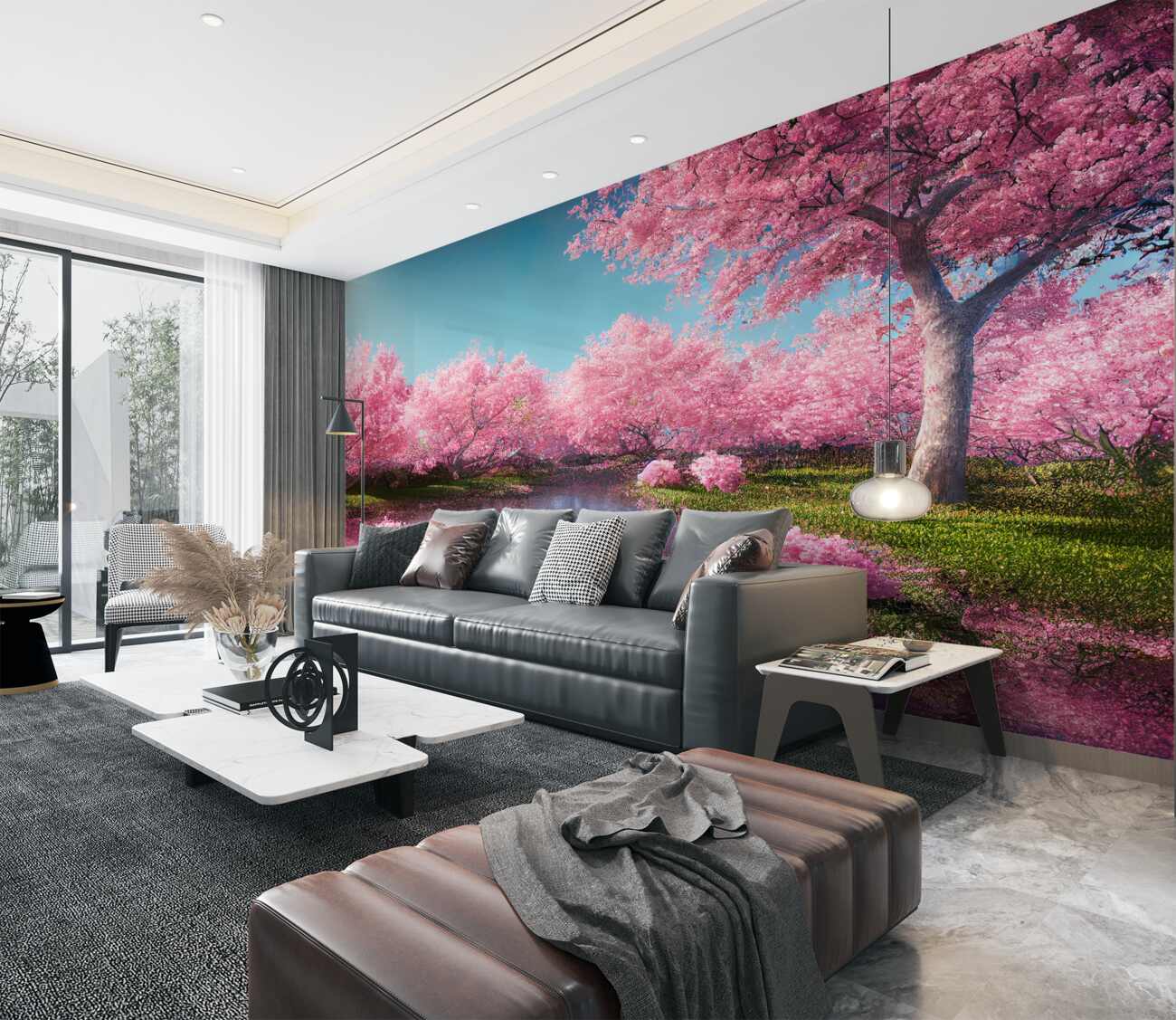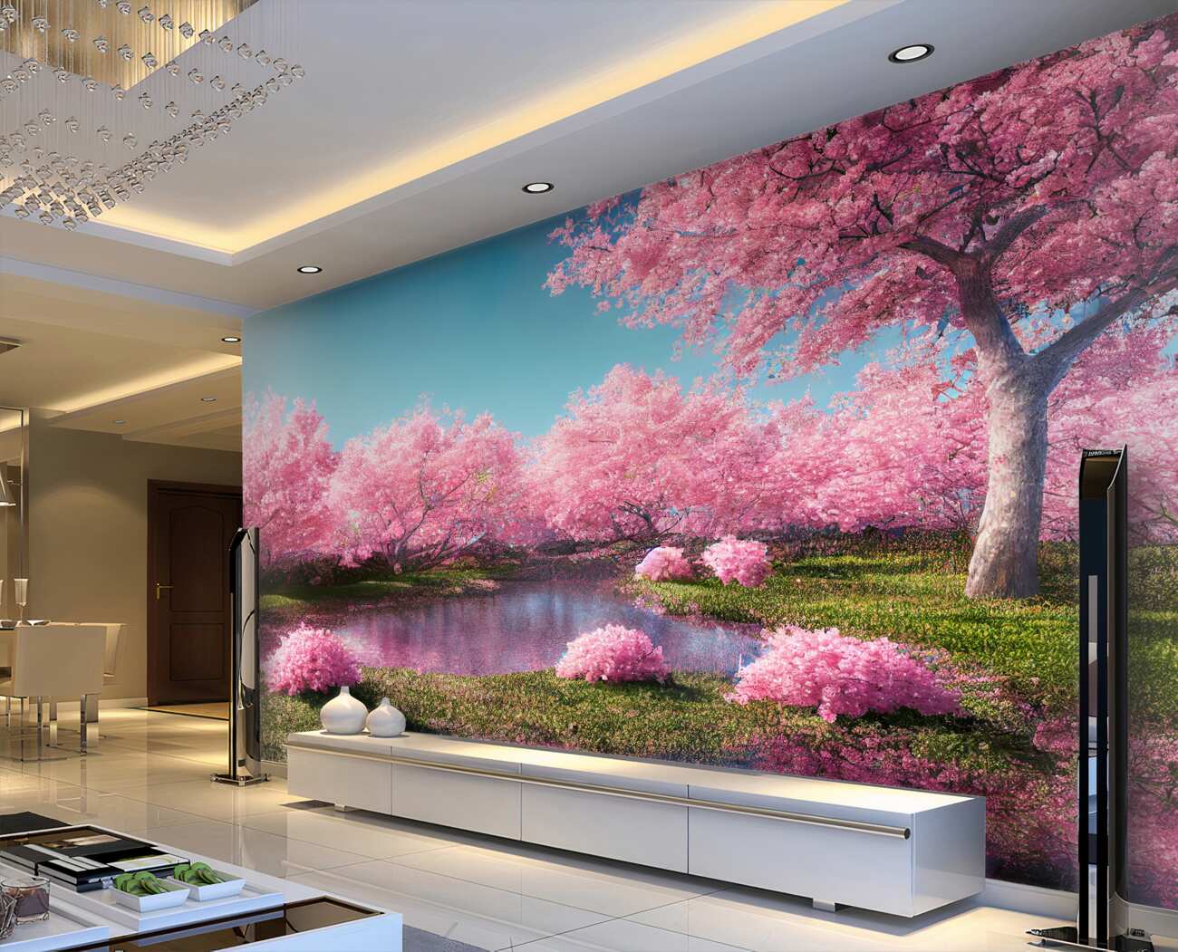 Tapeta Fototapeta Różowy ogród wiśni z wodą (artykuł a99832 ) z kategorii Fototapety 3D