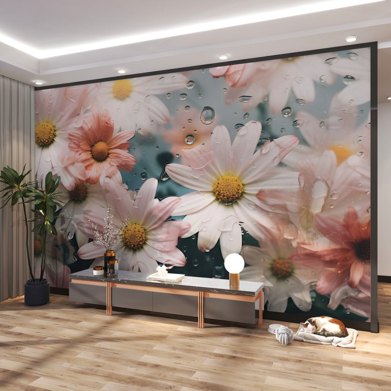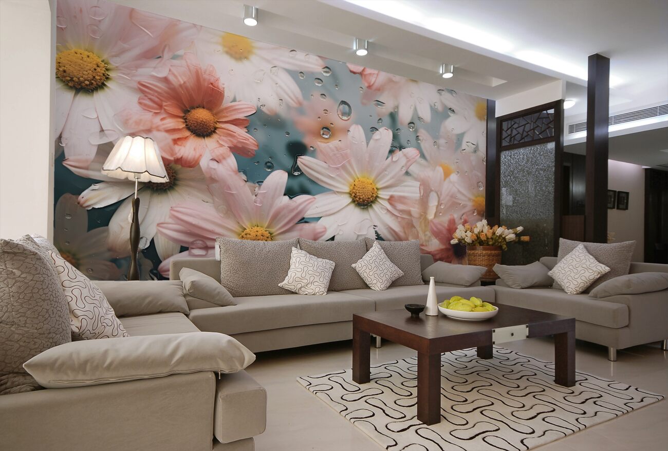 Tapeta Fototapeta Rumianek w deszczu (artykuł u10716 ) z kategorii Fototapety 3D