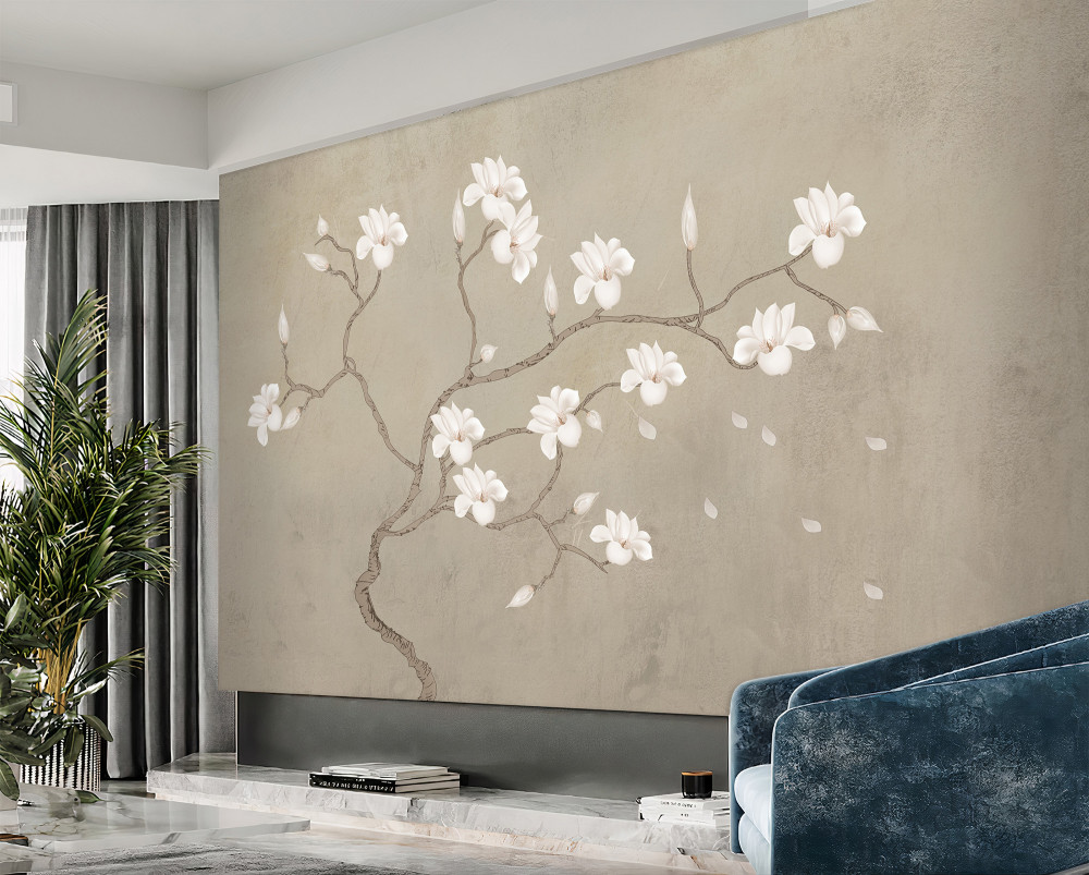 Tapeta Fototapeta samotne drzewo z białymi kwiatami we mgle (artykuł a94457 ) z kategorii Fototapety 3D