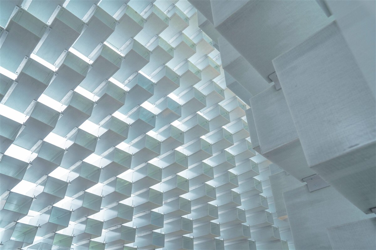 Fototapeta Ściana 3D z pływającymi prostokątami
