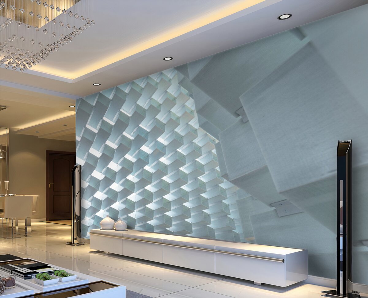 Tapeta Fototapeta Ściana 3D z pływającymi prostokątami (artykuł a98908 ) z kategorii Fototapety 3D