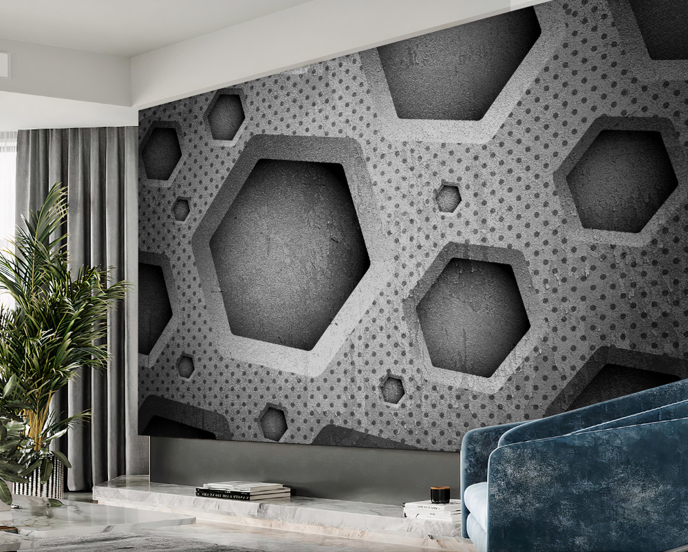 Tapeta Fototapeta ściana abstrakcyjnych sześciokątów (artykuł pb10049 ) z kategorii Fototapety 3D