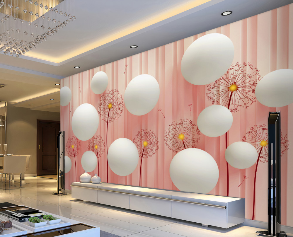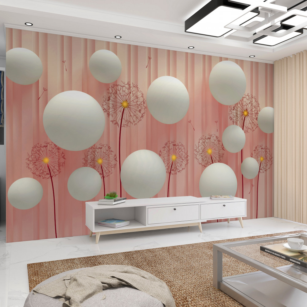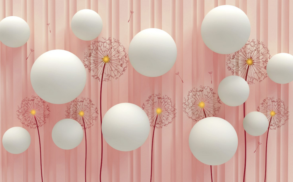 Tapeta Fototapeta smukłe mlecze i białe kulki na różowym tle (artykuł a91196 ) z kategorii Fototapety 3D