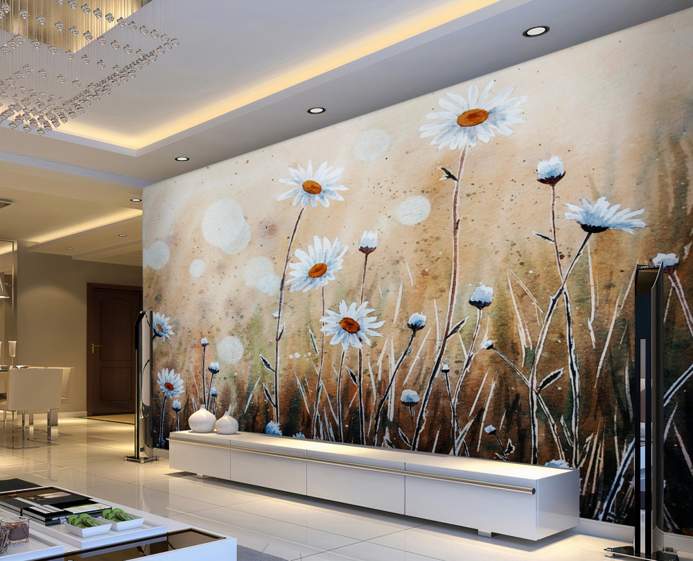 Tapeta Fototapeta smukłe stokrotki w letnim deszczu (artykuł a93233 ) z kategorii Fototapety 3D