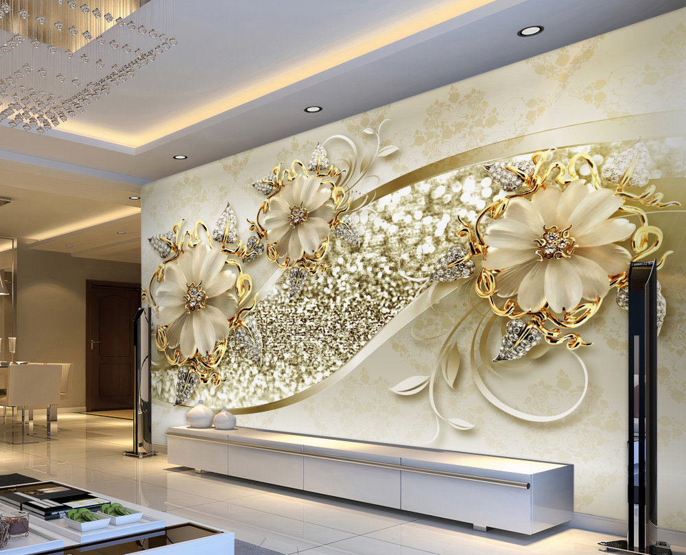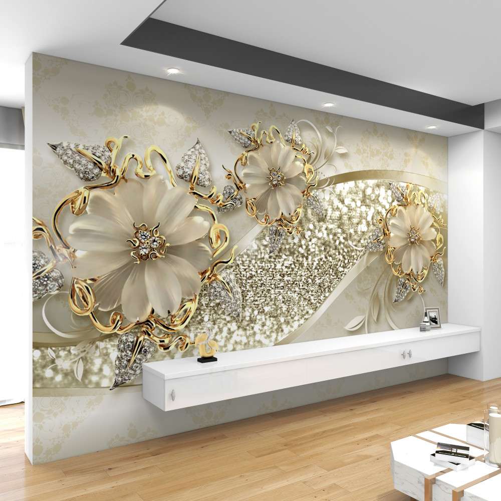 Tapeta Fototapeta śnieżnobiałe kwiaty na złotych gałązkach z perłami (artykuł a91204 ) z kategorii Fototapety 3D