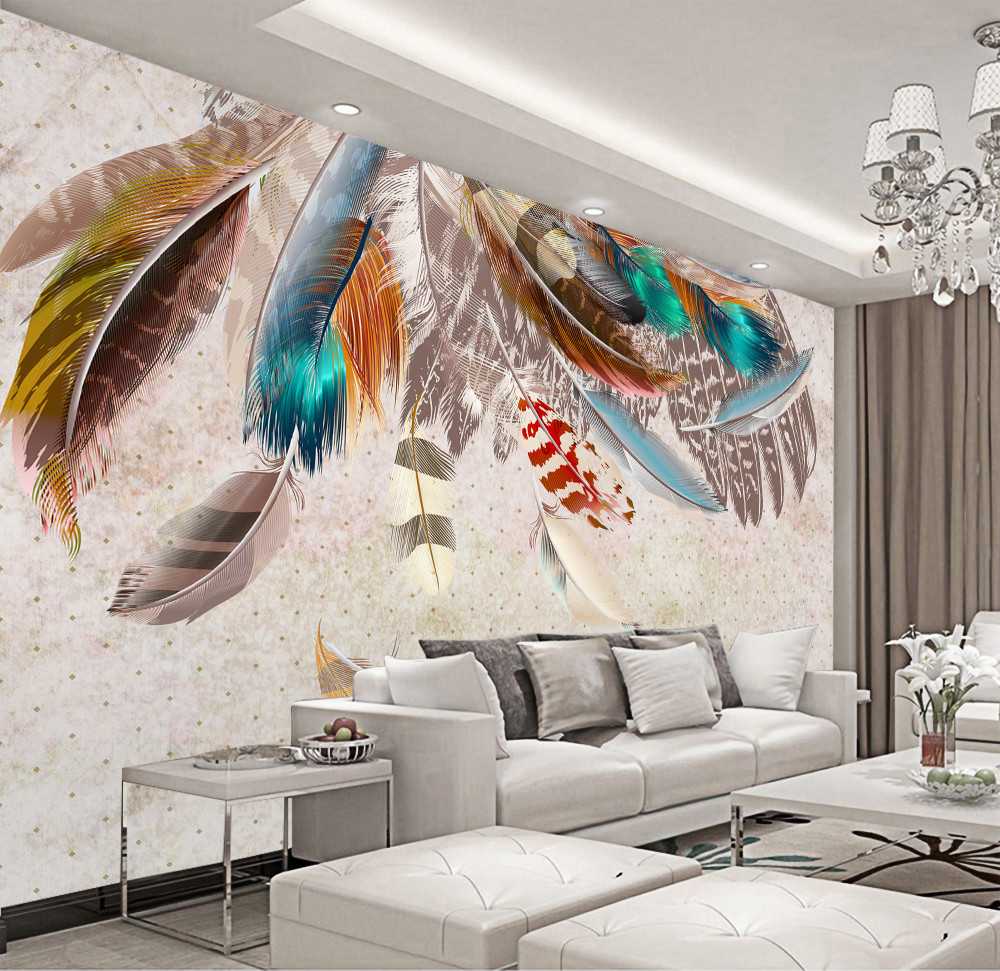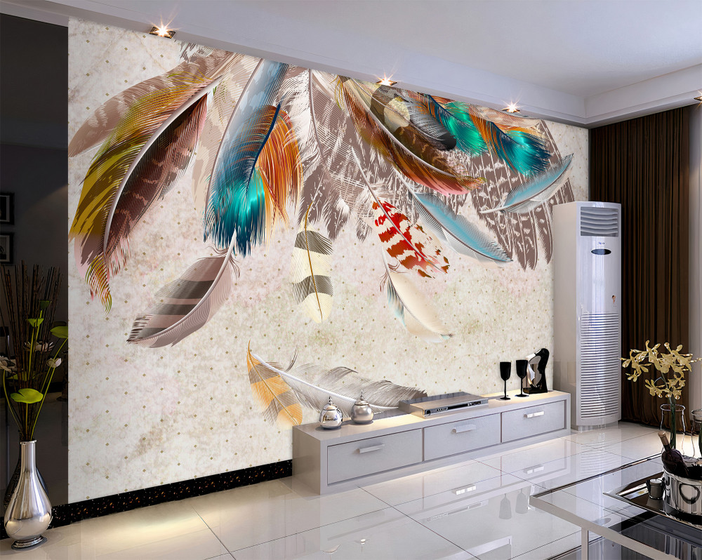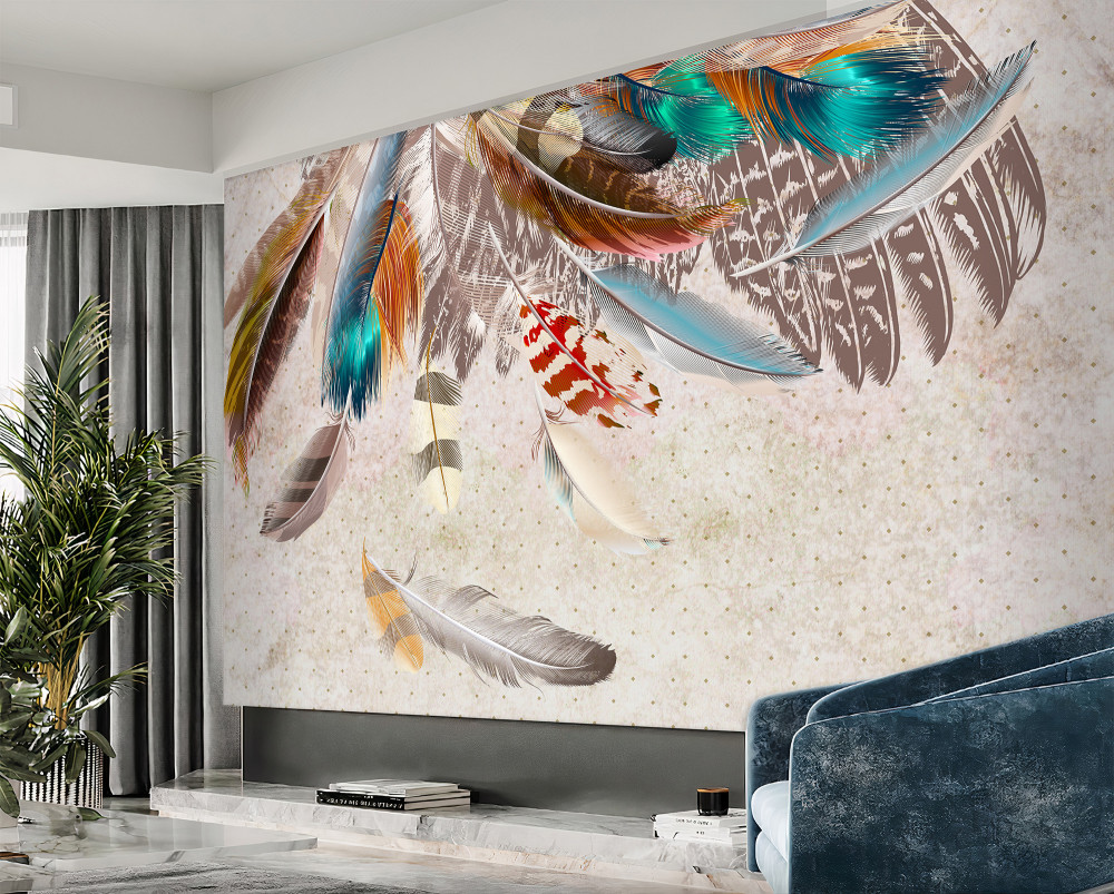 Tapeta Fototapeta spadające kolorowe pióra (artykuł a94405 ) z kategorii Fototapety 3D