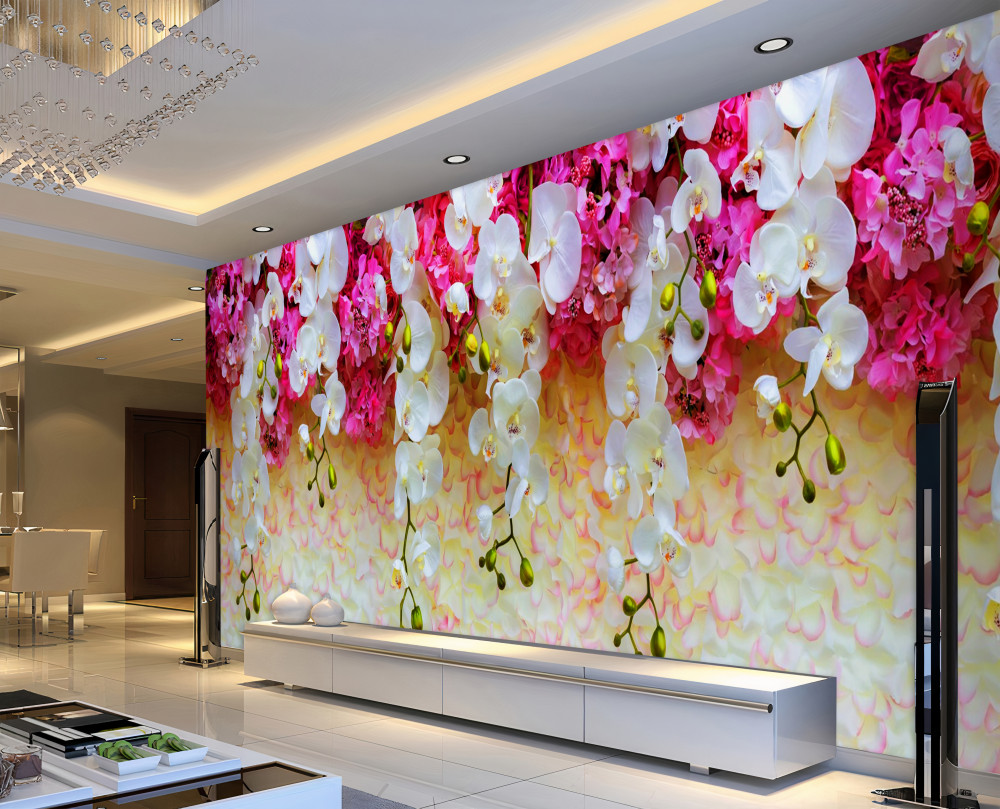 Tapeta Fototapeta spadające kwiaty orchidei (artykuł a93572 ) z kategorii Fototapety 3D