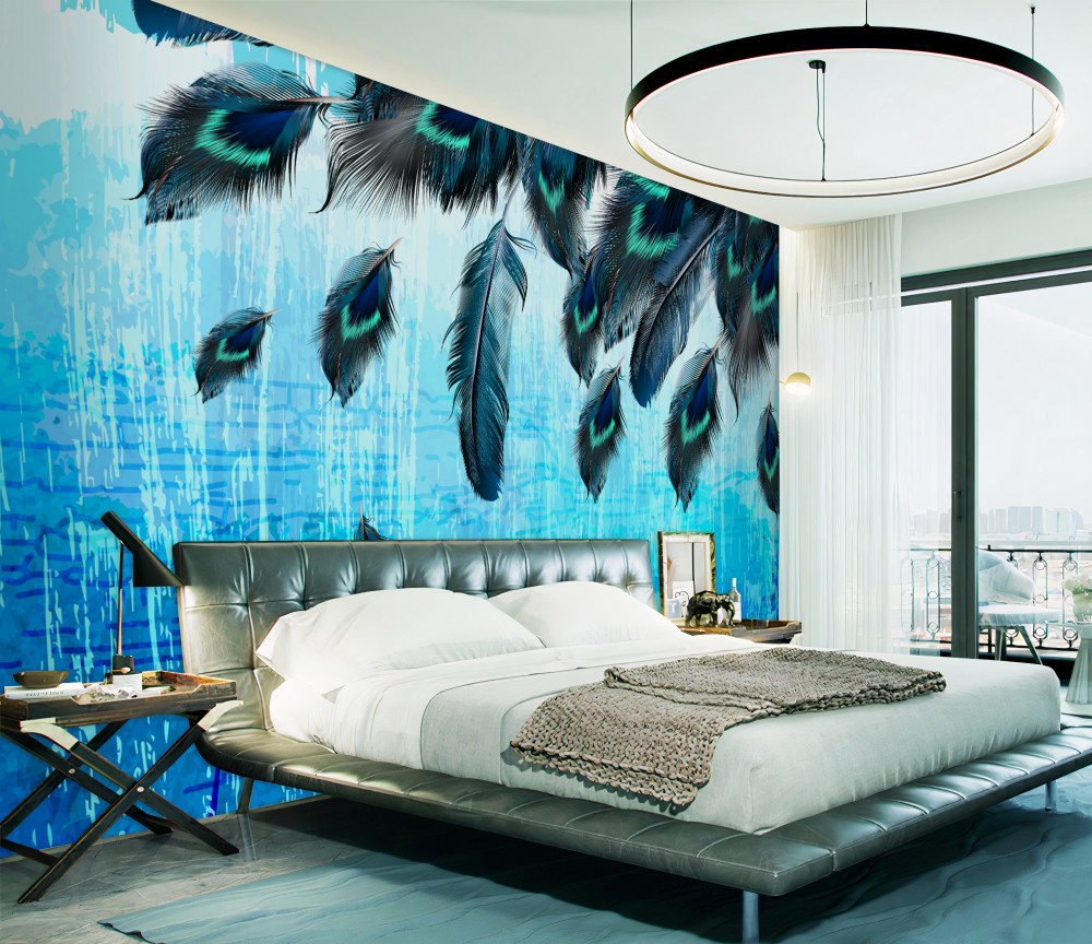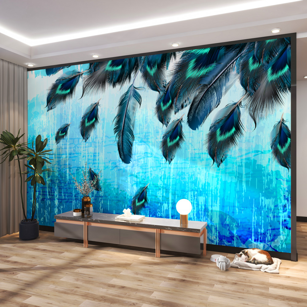 Tapeta Fototapeta spadające pawie pióra (artykuł pb3367 ) z kategorii Fototapety 3D