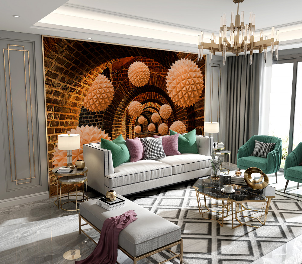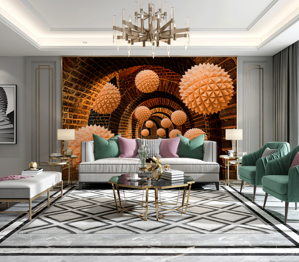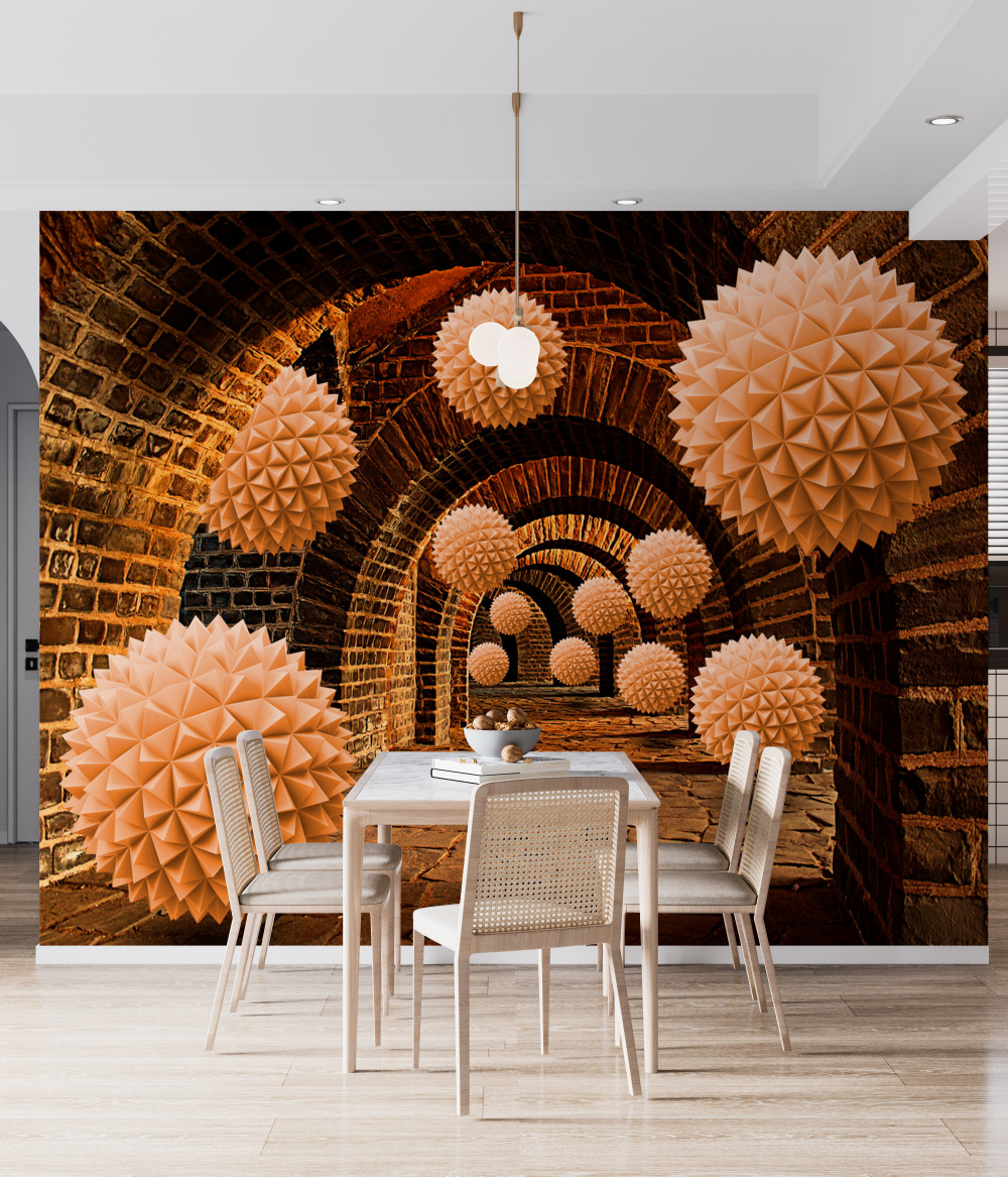 Tapeta Fototapeta spiczaste brązowe kule i kamienne łuki (artykuł a93485 ) z kategorii Fototapety 3D