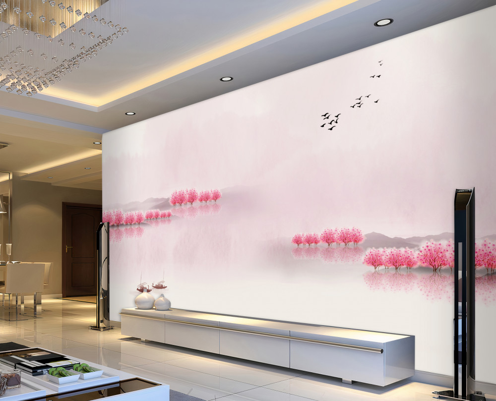 Tapeta Fototapeta spokojne wody i różowe brzegi lasów (artykuł a91843 ) z kategorii Fototapety 3D