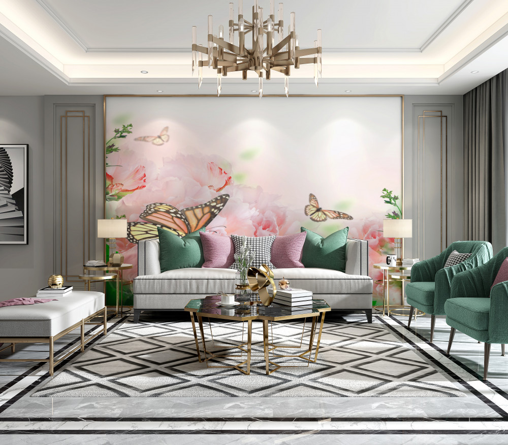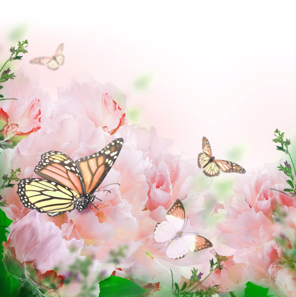 Tapeta Fototapeta stado motyli na tle letnich kwiatów (artykuł a93484 ) z kategorii Fototapety 3D