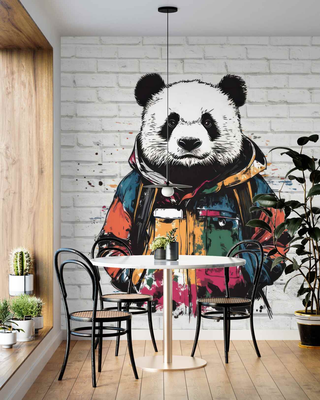 Tapeta Fototapeta Stylowa panda na tle ceglanej ściany (artykuł a99541 ) z kategorii Fototapety 3D
