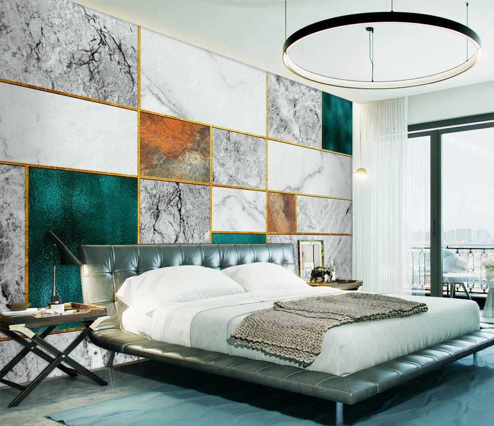 Tapeta Fototapeta szara mozaika ze szmaragdem (artykuł a92073 ) z kategorii Fototapety 3D