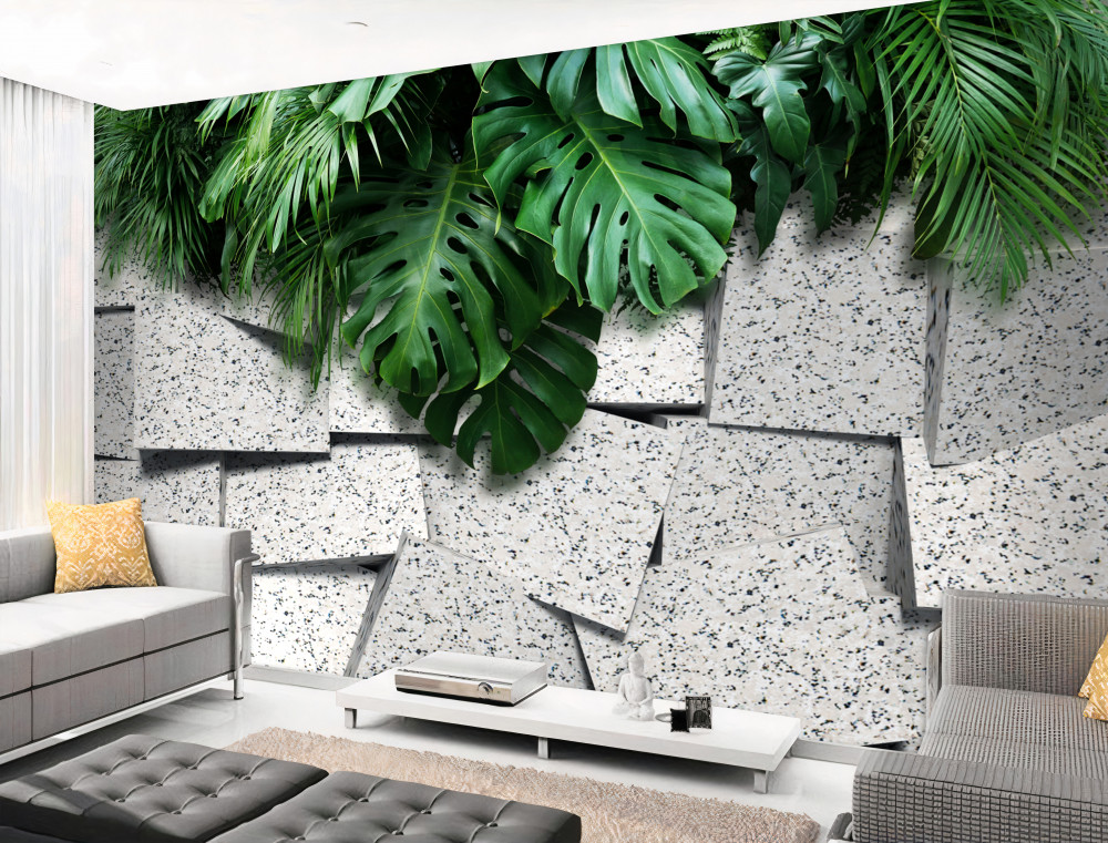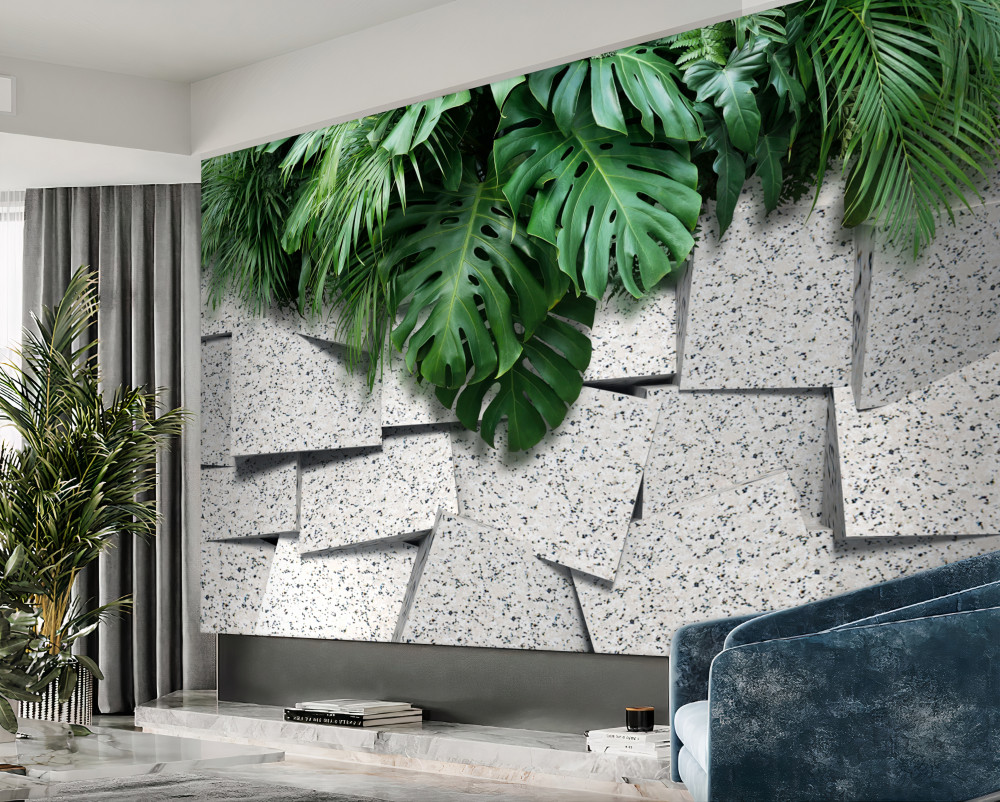 Tapeta Fototapeta tropikalna monstera na szarym tle (artykuł a90289 ) z kategorii Fototapety 3D