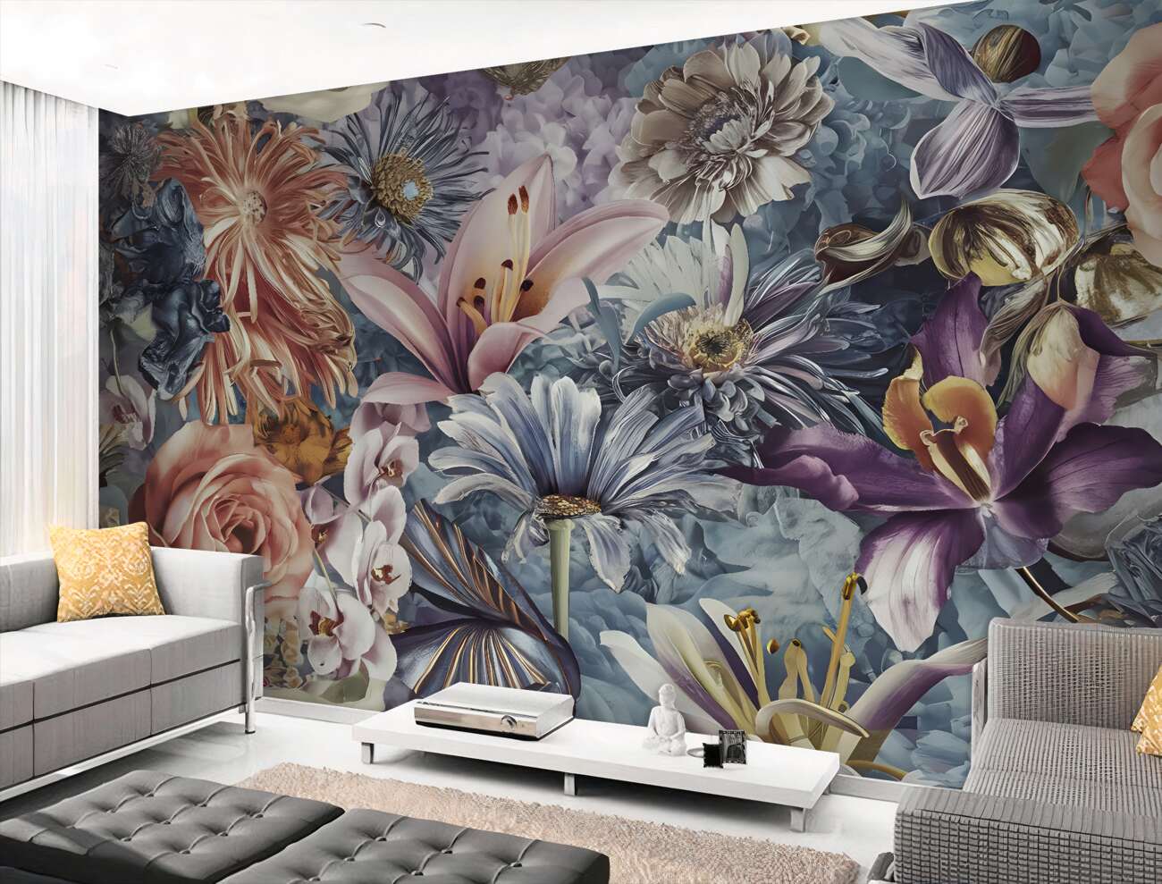 Tapeta Fototapeta Tropikalne kwiaty i róże (artykuł u11586 ) z kategorii Fototapety 3D