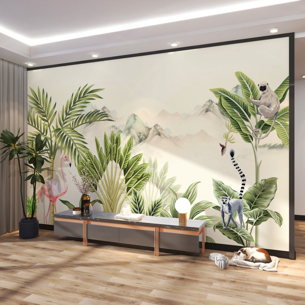 Tapeta Fototapeta tropiki i różowe flamingi (artykuł a94226 ) z kategorii Fototapety 3D