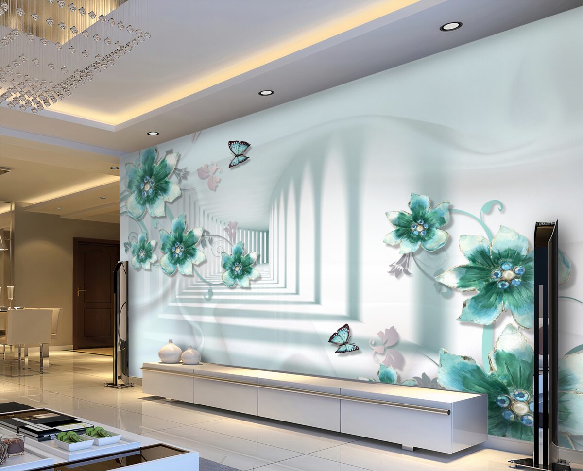 Tapeta Fototapeta Tunel 3D z zielonymi kwiatami (artykuł a98952 ) z kategorii Fototapety 3D