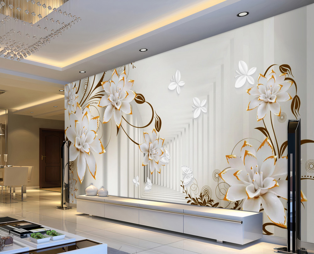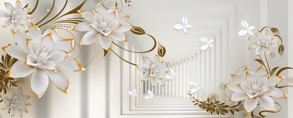 Tapeta Fototapeta tunel abstrakcji białego i złotego lotosu (artykuł a93546 ) z kategorii Fototapety 3D