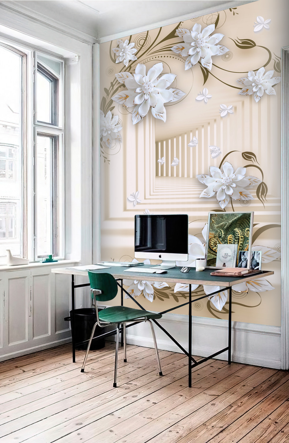 Tapeta Fototapeta tunel w perspektywie z kwiatami lotosu (artykuł a91142 ) z kategorii Fototapety 3D