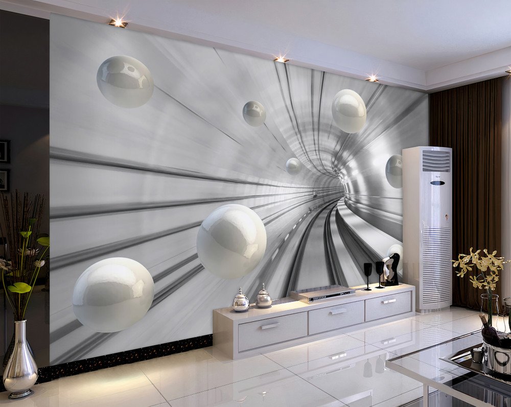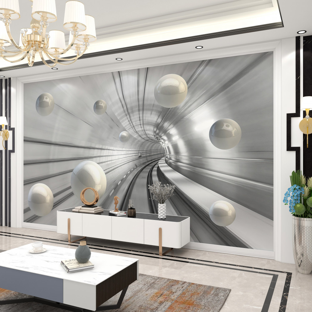 Tapeta Fototapeta tunel z latającymi białymi kulkami (artykuł a88377 ) z kategorii Fototapety 3D