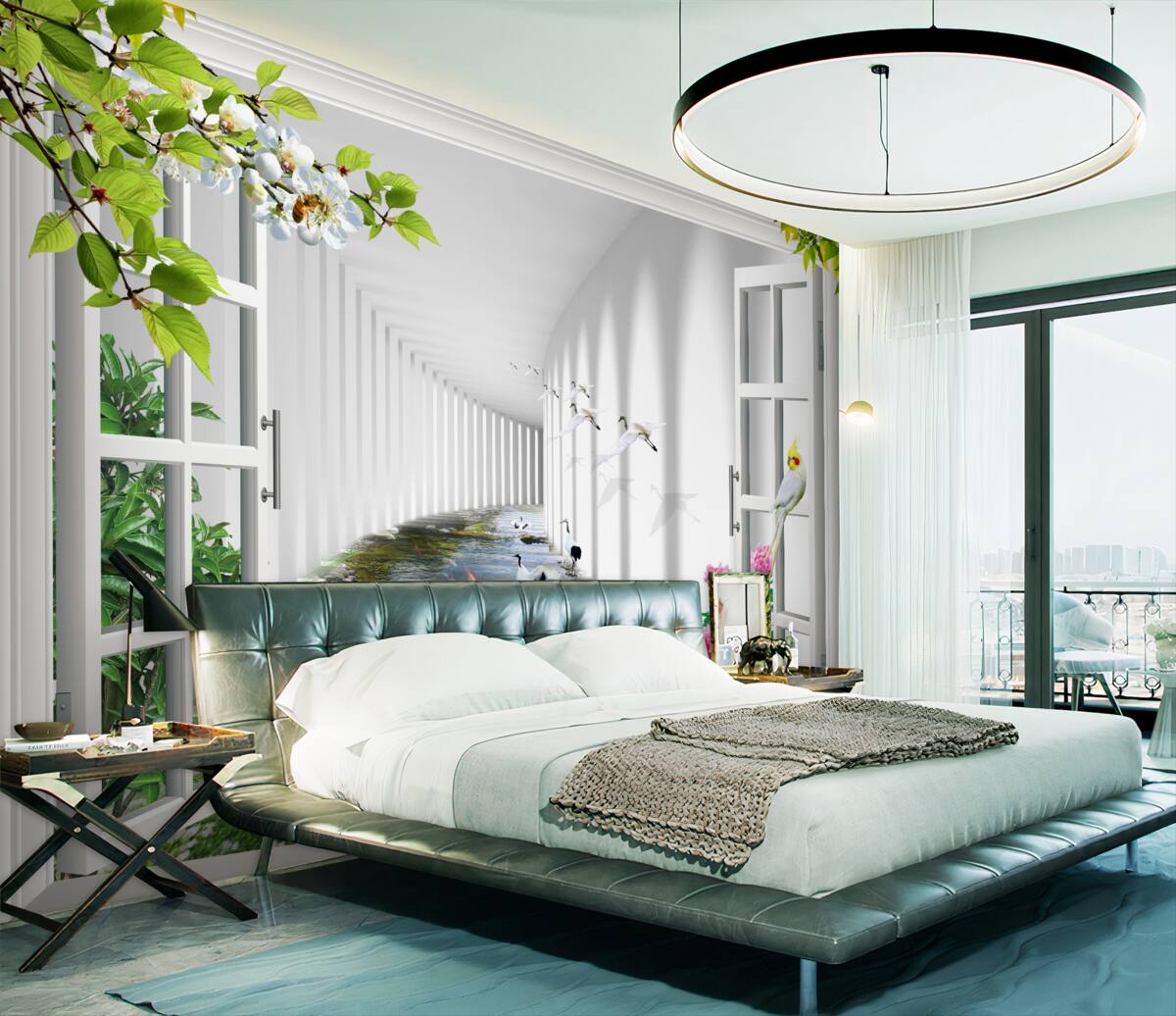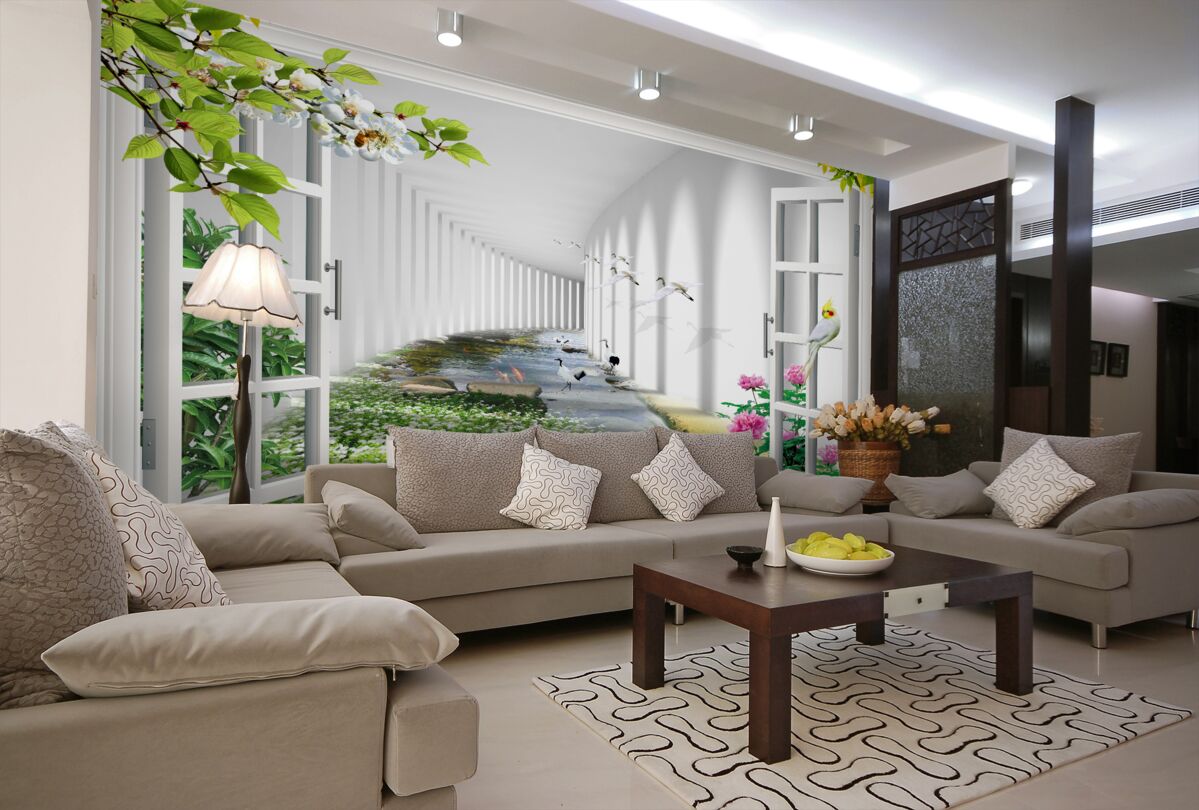 Tapeta Fototapeta Tunel z zielonym widokiem z okna (artykuł a98831 ) z kategorii Fototapety 3D
