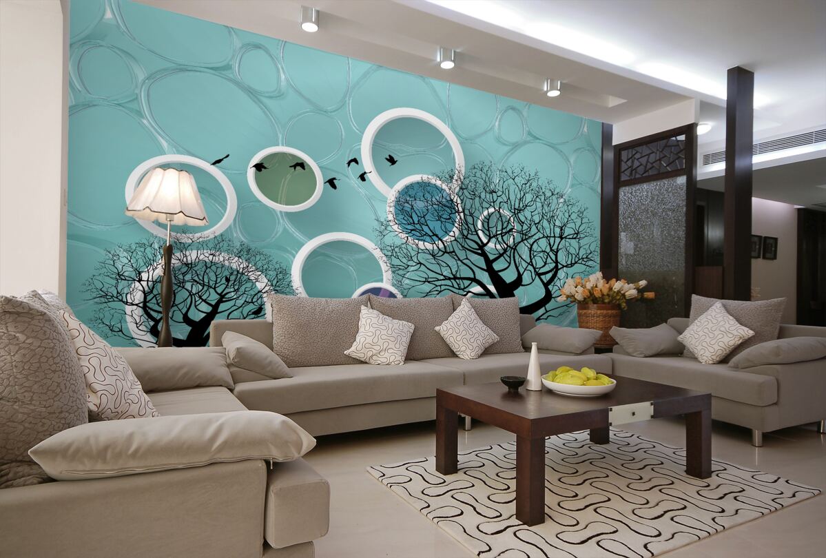 Tapeta Fototapeta Turkusowe drzewa i koła (artykuł a98320 ) z kategorii Fototapety 3D