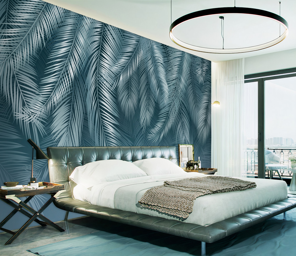 Tapeta Fototapeta turkusowe liście z piór (artykuł a90874 ) z kategorii Fototapety 3D