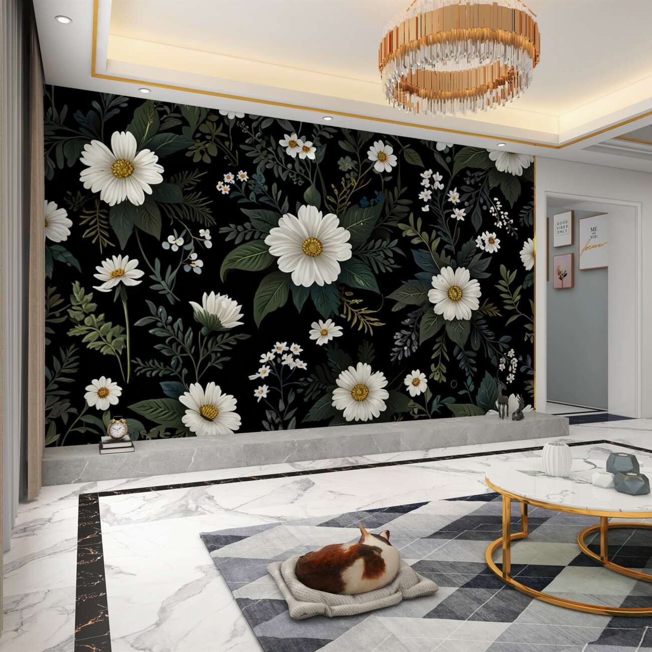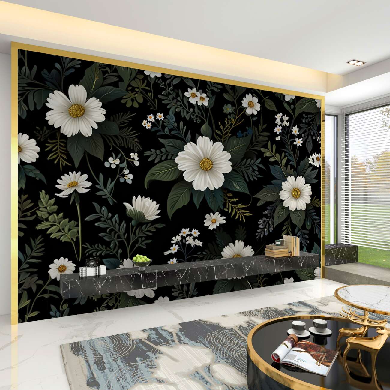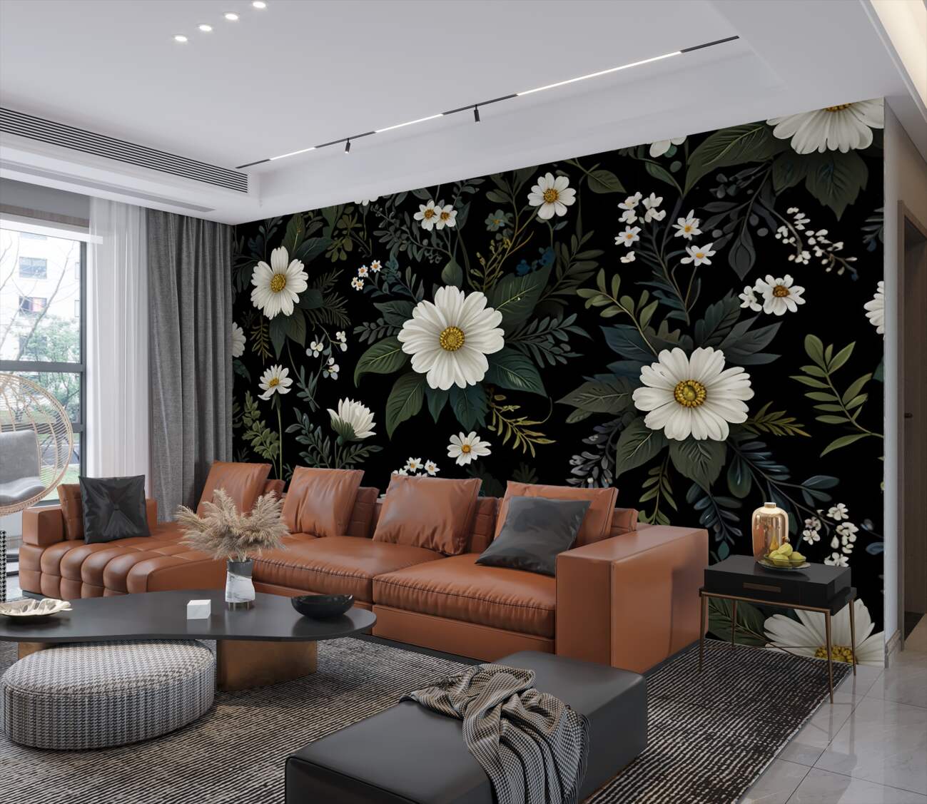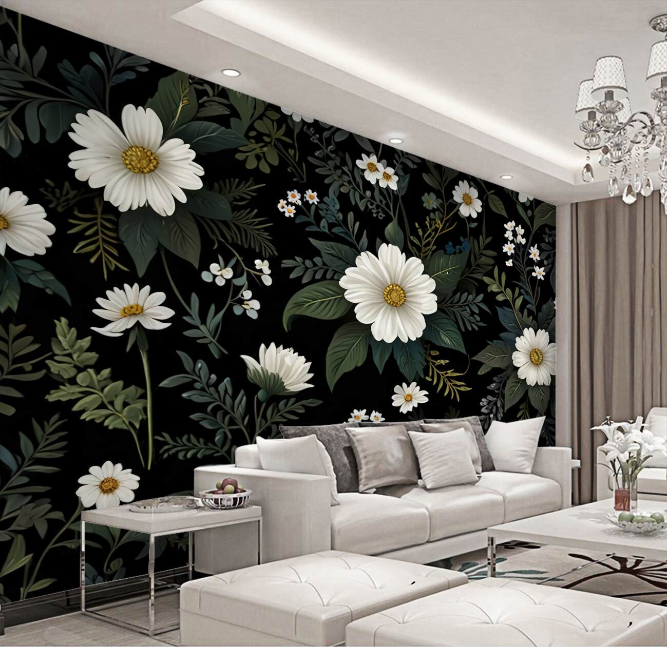 Tapeta Fototapeta U10808 Białe stokrotki z zielenią w ciemności (artykuł u10808 ) z kategorii Fototapety 3D