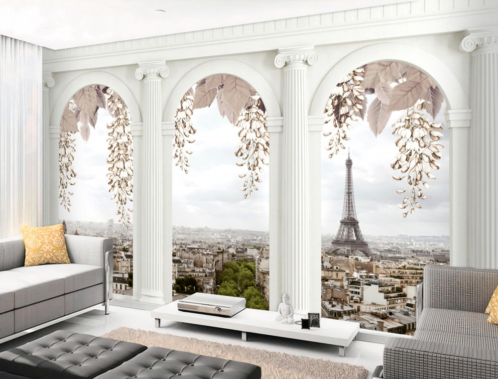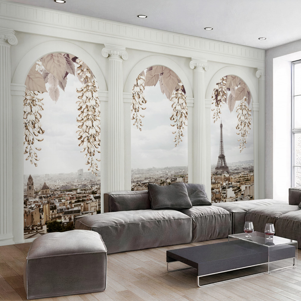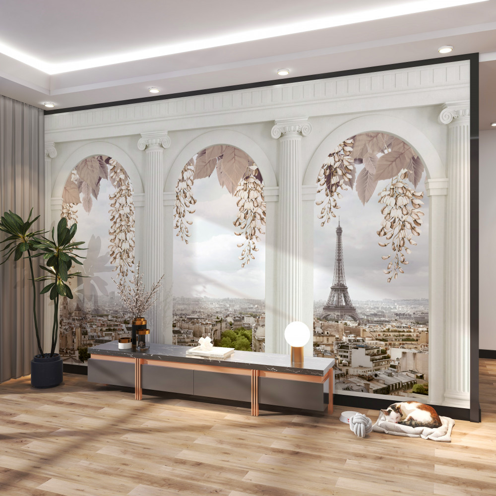 Tapeta Fototapeta ukwiecone łuki i panoramiczne widoki na Paryż (artykuł a90029 ) z kategorii Fototapety 3D