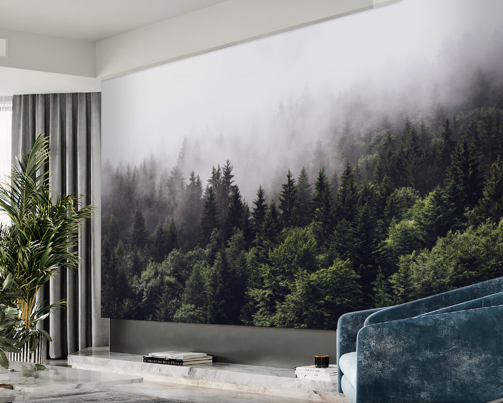 Tapeta Fototapeta widok z góry na las we mgle (artykuł a93804 ) z kategorii Fototapety 3D